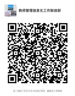 2.请各单位安排专人负责该项工作,填写《教师管理信息化工作联系人名单》,于3月17日中午12:00前将电子材料发送至邮箱:jsfzzx@ncwu.edu.cn,纸质版加盖公章报送至龙子湖校区综合实验南楼501B房间。同时,扫描下方二维码,加入工作群(限各单位工作联系人进群)。
