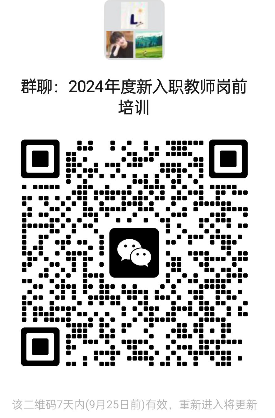 我校2023年10月30日后入职至今,尚未参加岗前培训的教师(名单见附件1)。请参训教师扫描通知下方二维码,于9月25日前加入微信群。