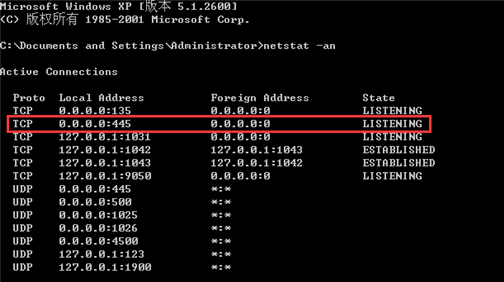 3、针对暂时无法安装补丁的Windows Server 2003以及Windows XP系统,可以通过关闭445端口(监控其他关联端口如: 135、137、139)来避免病毒侵害。