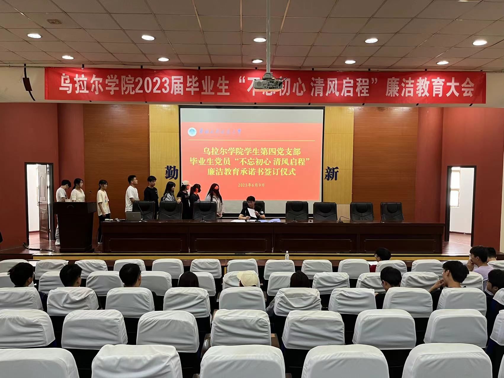 近日,乌拉尔学院启动“不忘初心 清风启程”廉洁教育系列活动。学院党委书记郭贵海为2023届毕业生党员上廉洁教育主题党课,副书记高郁斌为毕业生党员践清廉之行,各学生党支部开展了一系列形式多样、内容丰富的清廉教育活动。