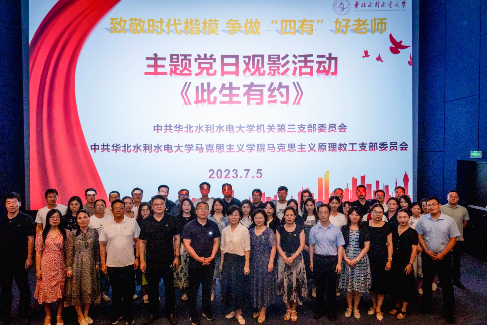 为深入学习贯彻习近平新时代中国特色社会主义思想主题教育,发挥先进典型的示范引领作用,加强师德师风建设,引导广大教师以赤诚之心、奉献之心、仁爱之心投身教育事业。2023年7月5日下午,机关第三党支部与马克思主义学院马克思主义原理教工党支部联合开展“致敬时代楷模 争做‘四有’好老师”主题观影活动,共同观看影片《此生有约》。