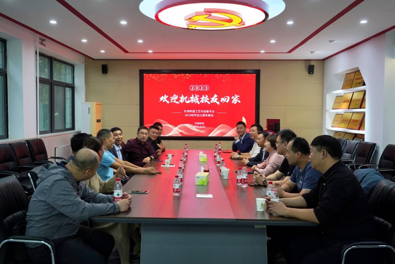 金秋十月,丹桂飘香,“国庆”、“中秋”和“校庆”三喜临门,机械学院迎来了机械制造工艺与设备专业9819班的校友们。10月5日上午,机械学院在3204会议室召开师生联谊会,热烈欢迎校友代表相聚母校,追忆毕业21周年。院长、机械校友分会会长王丽君,院党委书记杨杰以及机械校友分会秘书长雷冀南参加联谊会议。