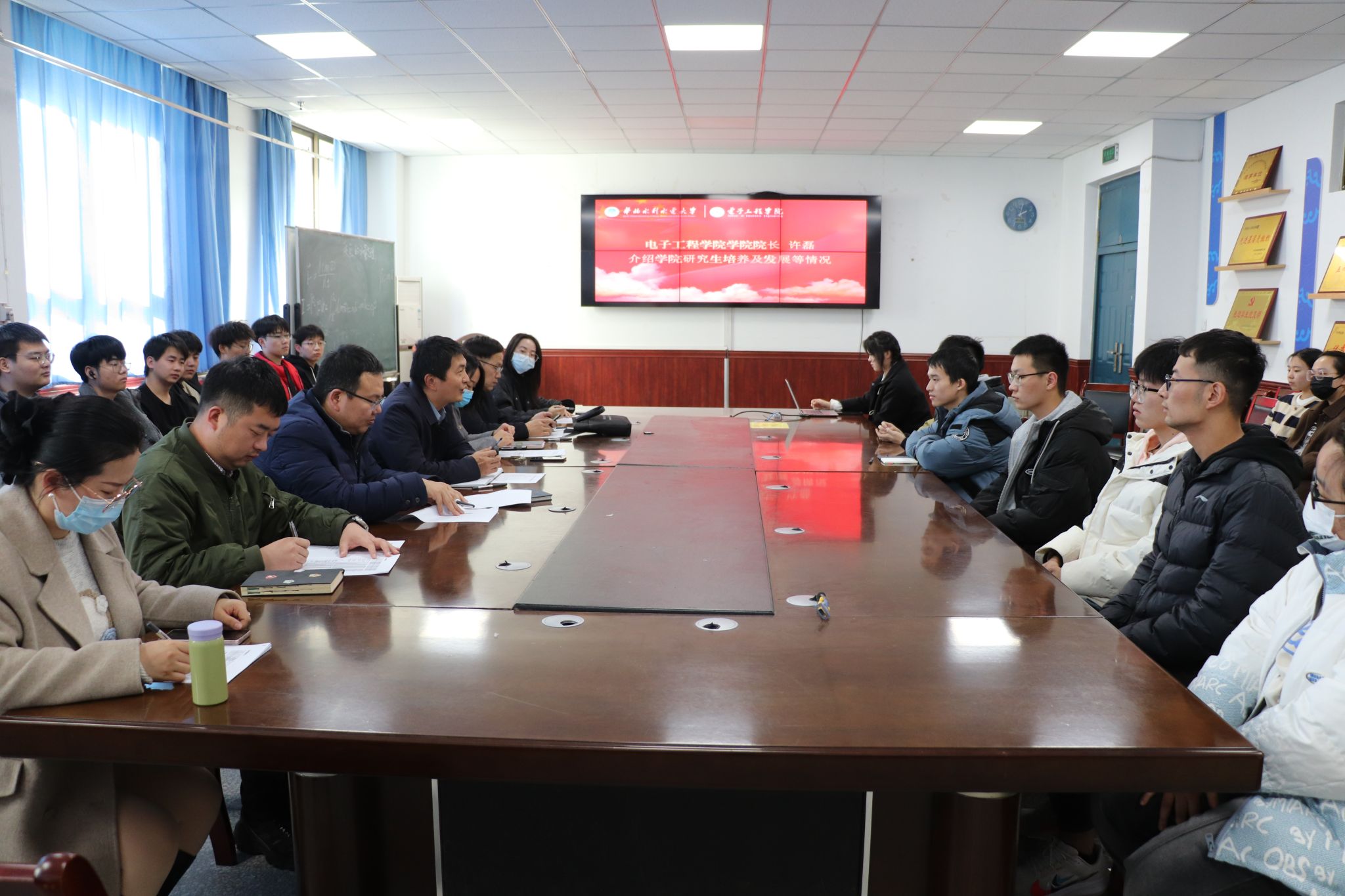 2024年研究生考试近在咫尺,为缓解考研学子备考压力、增强迎考信心,给予学生冲刺阶段的备考建议,电子工程学院于12月7日下午在S5-203会议室组织召开了考研指导座谈会。院党委书记许丽,院长许磊,院党委副书记张兵建,系主任代表王行业、朱安福,教师代表朱治华,2020级辅导员及考研学生代表参加了本次活动。本次会议由张兵建主持。