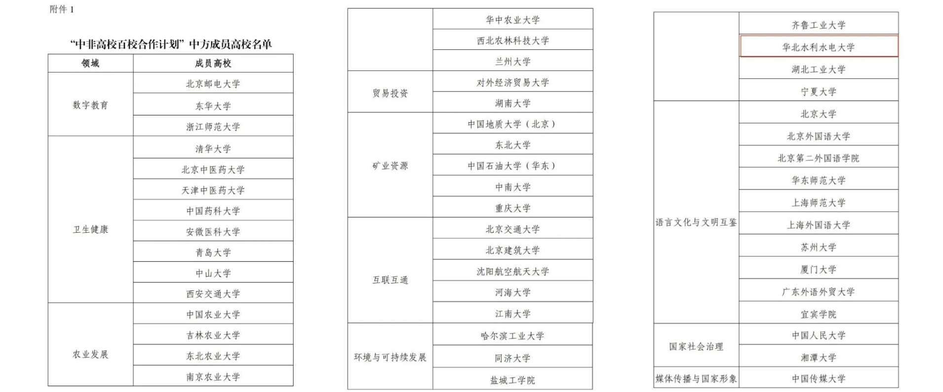 5月6日,中国高等教育学会发布“中非高校百校合作计划”中方成员高校和“中非大学联盟”交流机制中方成员高校名单,华北水利水电大学顺利入选,是河南省唯一一所入选该合作计划的高校。