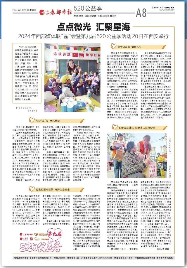 520,我们爱公益。5月20日,由陕西省委网信办、陕西省委社会工作部指导,阿里巴巴公益联合三秦都市报社全媒体及西部12省(区、市)媒体共同发起的2024年西部媒体联“益”会暨第九届520公益季活动在西安举行。陕西省委社会工作部副部长林海君,陕西省委网信办副主任马卫东,共青团陕西省委副书记惠旋,陕西省妇联党组成员、副主席党洁,陕西日报社负责人,以及三秦都市报、封面新闻·华西都市报等12省(区、市)的16家媒体相关负责人、代表参会。来自12省(区、市)的10位公益人、10位公益项目代表以及陕西10地市的五十位志愿者受邀参加。
