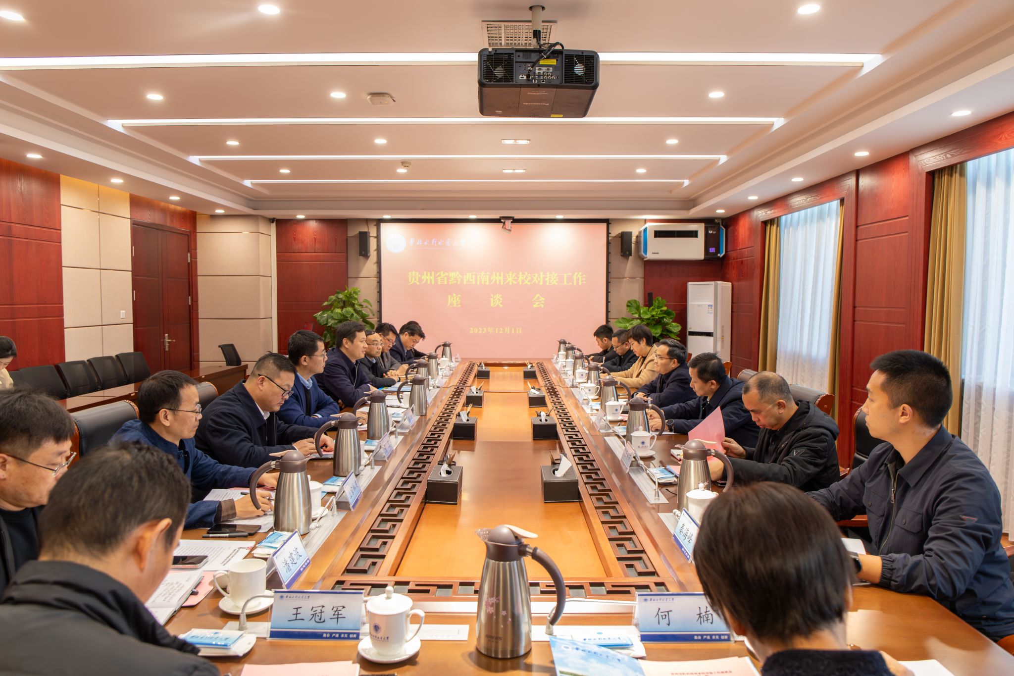 12月1日下午,贵州省黔西南州委书记陈昌旭,州委常委、州委秘书长赵刚,州政府副州长王丽琼等一行来校调研交流,校党委书记王笃波,副校长李仰智会见了陈昌旭一行,双方就进一步深化校地合作发展进行了座谈。