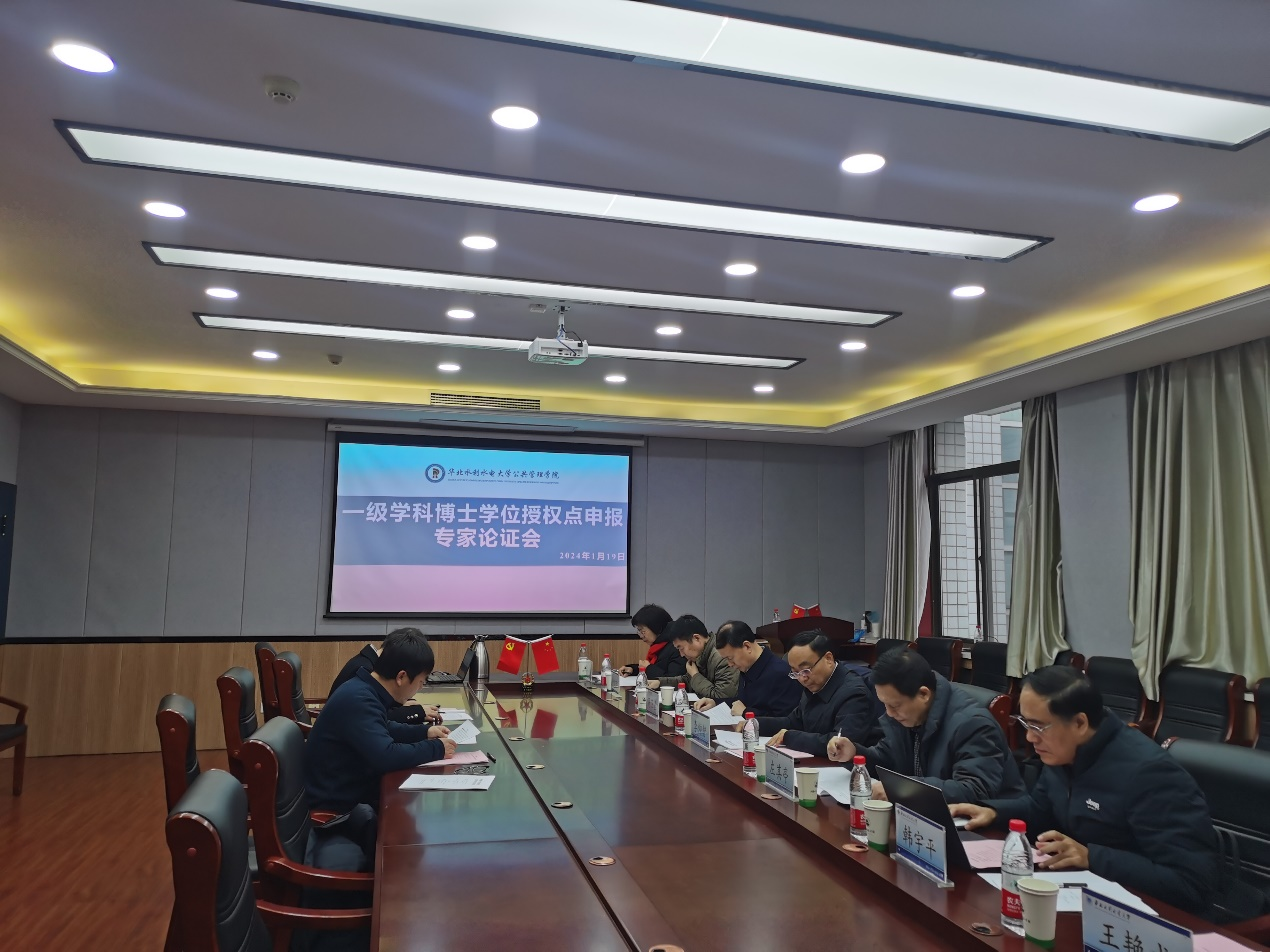 会议特邀郑州大学高卫星教授、谢海军教授、左其亭教授及我校人事处处长王艳成教授、社科处处长饶明奇教授、一流学科创建办公室主任韩宇平教授和水务培训中心主任何楠教授组成专家组对学院申报情况进行论证指导,并针对公共管理学科博士点申报的具体方案提出了宝贵意见。