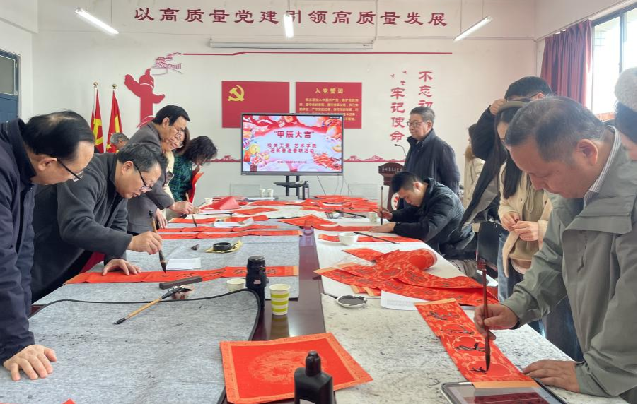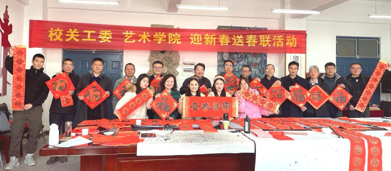 为丰富校园文化精神生活,营造欢乐祥和的节日氛围,弘扬中华优秀传统文化,在龙年新春到来之际,校关工委、艺术学院于1月22日在S2-307开展“迎新春 送春联”活动,以书写春联形式,为学校师生送上了新年的美好祝福。