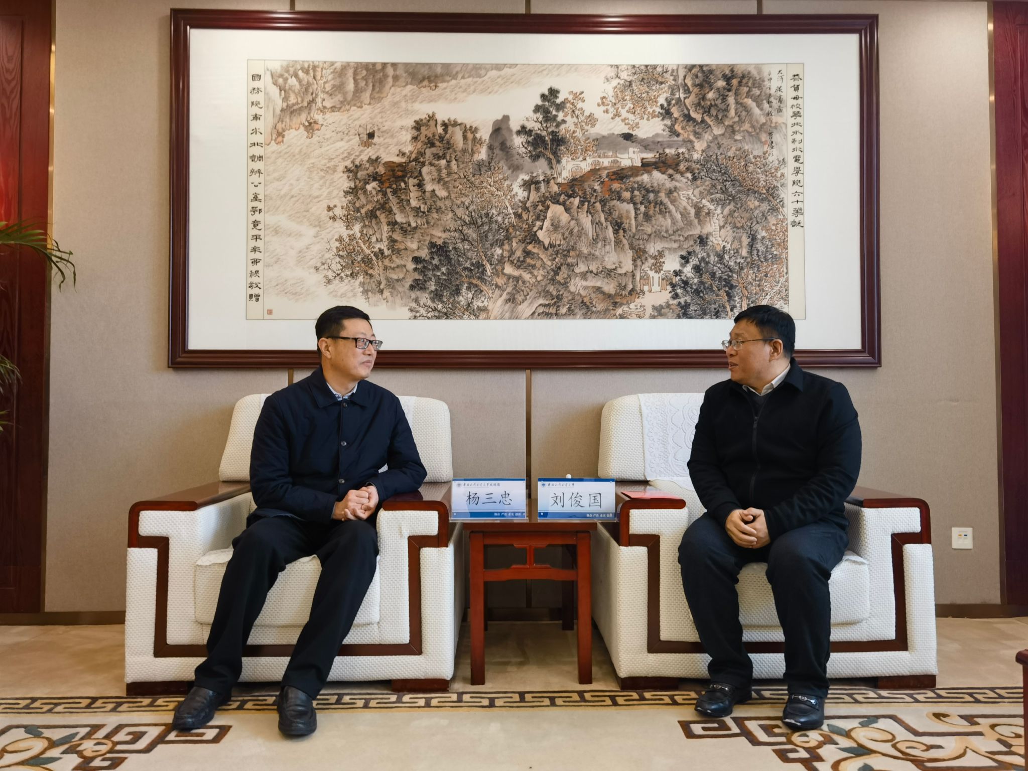 省委统战部副部长杨三忠与校长刘俊国座谈交流