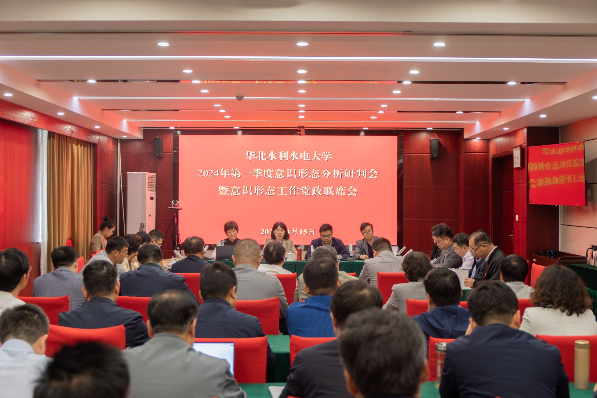4月15日下午,我校在第四会议室召开2024年第一季度意识形态分析研判会暨意识形态工作党政联席(扩大)会议。学校意识形态工作分析研判成员单位负责人及各二级党组织书记参加会议。校党委副书记焦爱萍主持会议。