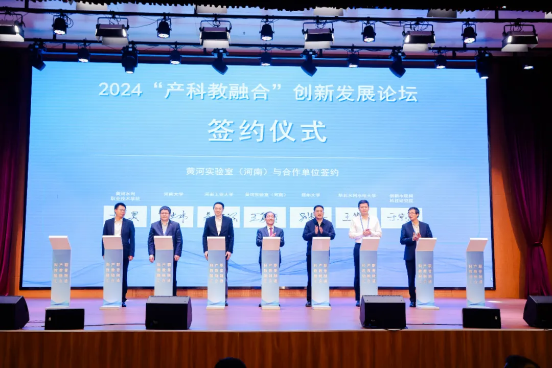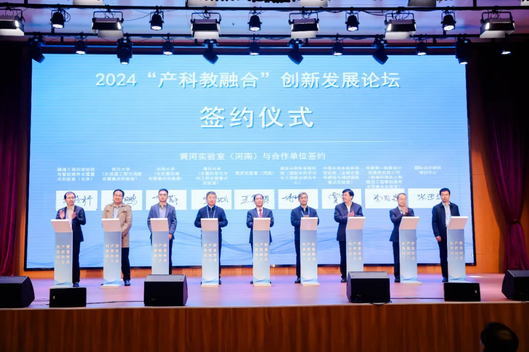 黄河实验室(河南)与南京水利科学研究院(国际水科学与水工程联合研究中心)、清华大学(水圈科学与水利工程全国重点实验室)、中国水利水电科学研究院(流域水循环模拟与调控国家重点实验室)、河海大学(水灾害防御全国重点实验室)、中铁第一勘察设计院集团有限公司(极端环境岩土和隧道工程智能建养全国重点实验室)、武汉大学(水资源工程与调度全国重点实验室)、国际泥沙研究培训中心、隧道工程灾变防控与智能建养全国重点实验室(北京)、郑州大学、河南工业大学、华北水利水电大学、河南大学、创新水联网科技研究院、黄河水利职业技术学院等合作单位进行签约仪式。