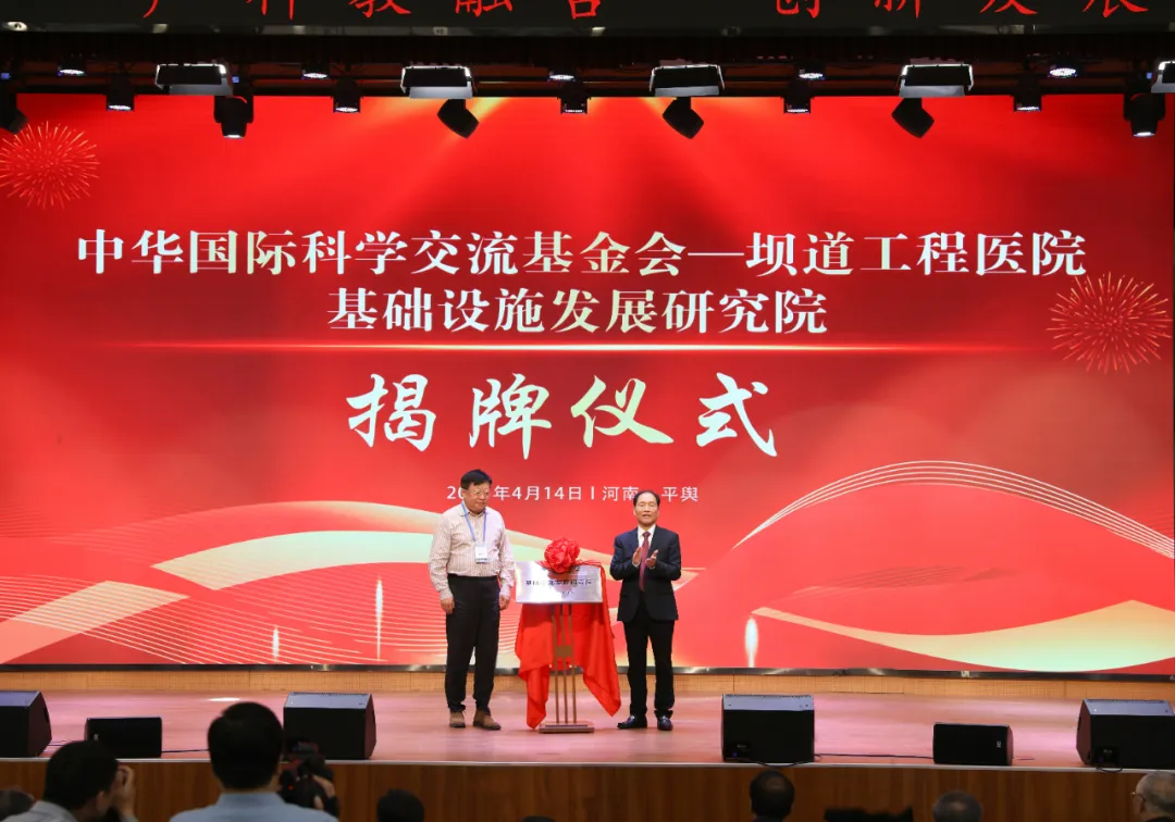 在与会人员的共同见证下,王复明院士和中华国际科学交流基金会网络安全与信息化专家委员会主任刘新元共同为“中华国际科学交流基金会—坝道工程医院”基础设施发展研究院揭牌。