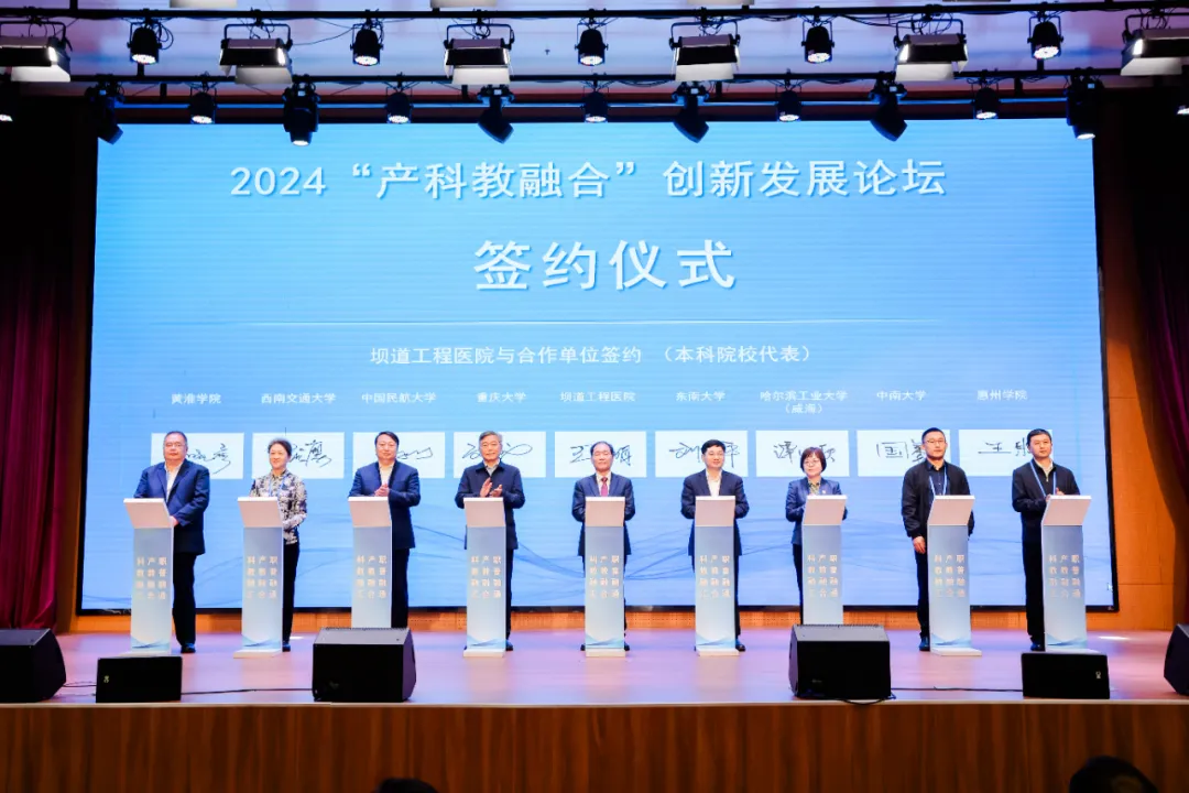 坝道工程医院与东南大学、重庆大学、哈尔滨工业大学(威海)、中国民航大学、中南大学、西南交通大学、惠州学院、黄淮学院、陕西铁路工程职业技术学院、黄冈职业技术学院、河南机电职业学院、广州城建职业学院、湖北水利水电职业技术学院、四川建筑职业技术学院、日照职业技术学院、安阳职业技术学院等合作单位进行签约仪式。