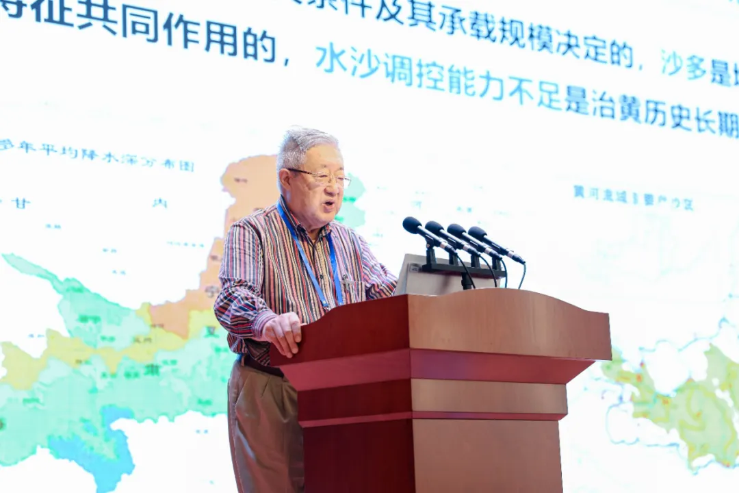王浩院士作题为《黄河流域水安全保障几个问题的讨论》的报告。他介绍道,增水减沙是黄河流域系统治理的关键,通过林草植被、梯田、水库拦沙、淤地坝等工程措施能够从坡面、沟道、水库等多个阶段对泥沙进行拦截。他表示,针对黄河流域水资源供需矛盾,通过实施黄河流域水平衡战略,建立多重关联的平衡关系,以平衡促均衡发展,采取加强全流域水源涵养、黄河水量分配方案再调整、完善水网工程体系、强化供需双向调控等对策,能够保障黄河流域水资源安全,支撑黄河重大国家战略实施。
