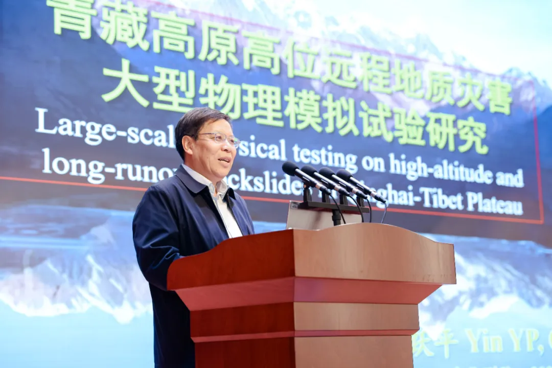 殷跃平院士作题为《青藏高原高位远程地质灾害大型物理模拟试验研究》的报告。他介绍道,高位远程地质灾害具有滑坡体量大、滑动距离远、影响范围广等特点。通过大型物理模拟实验,深入分析了高位远程滑坡的启动机制、运动特性、堆积过程以及复杂多向多体动力学过程。他提出了基于高速摄影技术和地震信号分析的早期预警措施,并指出通过构筑谷坊、桩林坝、桩梁坝等多级防治工程,能够有效消减滑坡体冲击力。他表示,未来将继续深化研究,探索更多高效、经济的防治方法,进一步提升地质灾害预警和防治能力,确保人民生命财产安全。