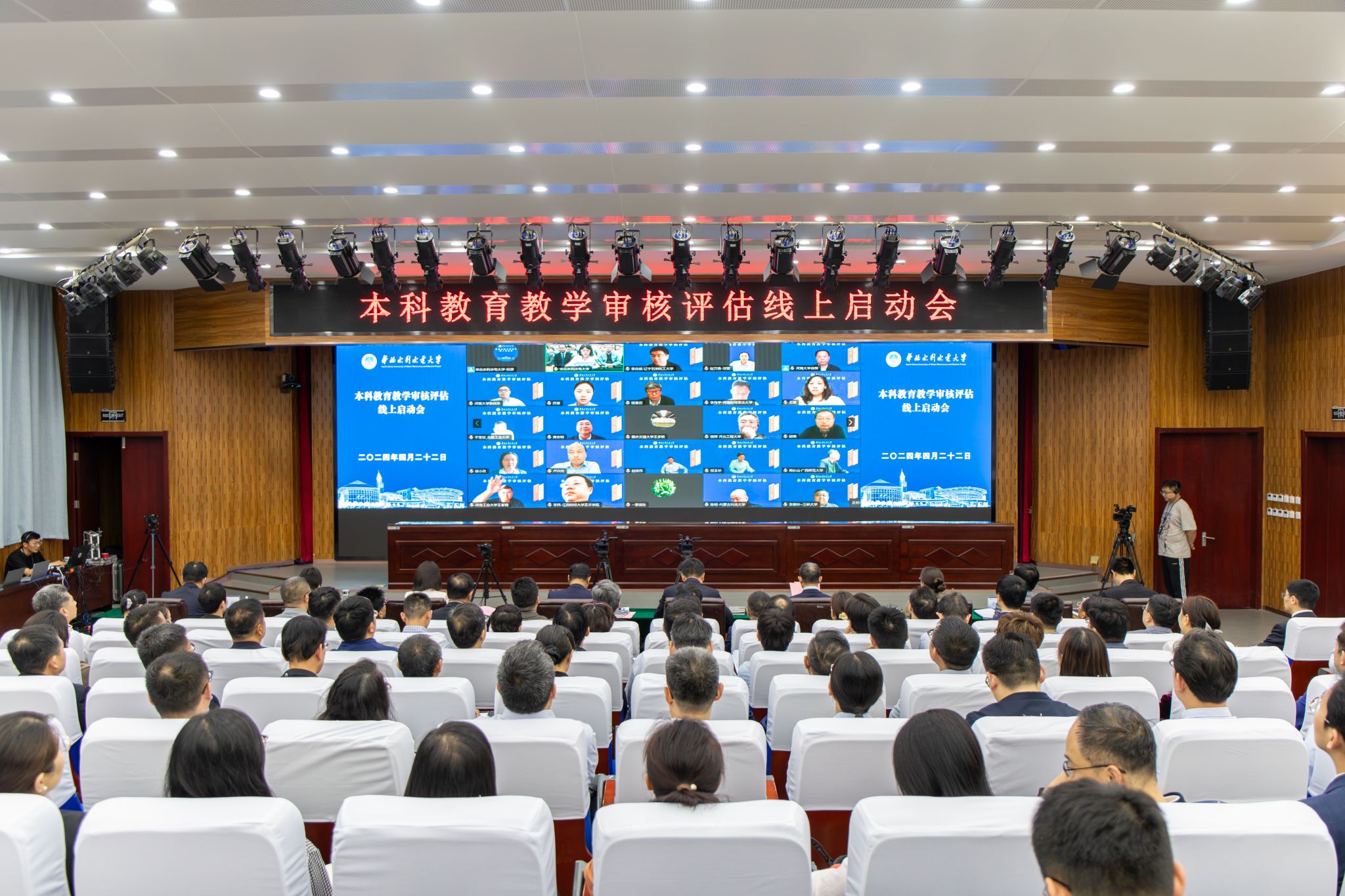 会议以线上线下相结合的方式分两个阶段进行,第一阶段由校党委副书记焦爱萍主持,校党委书记王笃波致辞。王笃波代表学校全体师生向出席会议的专家、领导表示热烈欢迎和衷心感谢。他指出,自迎评工作开展以来,全校上下高度重视,对标对表评估指标体系,强化顶层设计系统设计,全面加强校党委对本科教育教学工作的领导,形成党委领导、校长主抓、院长落实、全员参与的工作格局,持续巩固人才培养中心地位和本科教育教学核心地位;推动人才培养模式转变,聚焦高等教育改革和学校事业发展现实需要,围绕学术型人才培养方向,开展全校范围本科教育教学思想大讨论,提出了卓越工程创新人才培养目标;持续完善“三全育人”机制,建立以学生为中心、以育人为主线的教育教学制度体系,强化责任统筹、力量整合、系统推进,不断凝聚“三全育人”合力,将立德树人根本任务落到实处。他表示,本科教育教学审核评估工作正式启动,既是对学校办学水平、治校能力、师生风貌的一次全面检阅,也是我们进一步启发思路、促进发展的难得机遇。学校全体师生将以高度的责任感使命感、求真务实的工作作风,积极配合、全力支持专家组工作,诚恳接受审核评估检查,虚心接受专家指导意见,认真审视短板不足,坚决抓好反馈问题整改落实,把审核评估成效转化为推动人才培养质量持续提升的强大动力,推动学校内涵式高质量发展。
