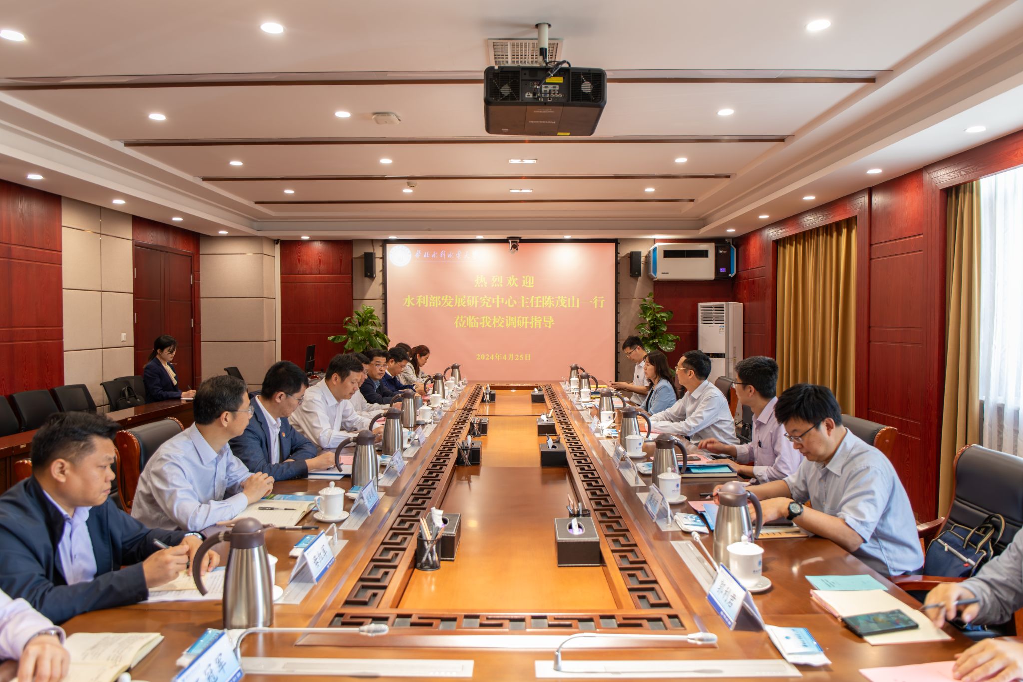 4月25日上午,水利部发展研究中心主任陈茂山一行来校调研座谈,校党委书记王笃波、校长刘俊国出席座谈会。
