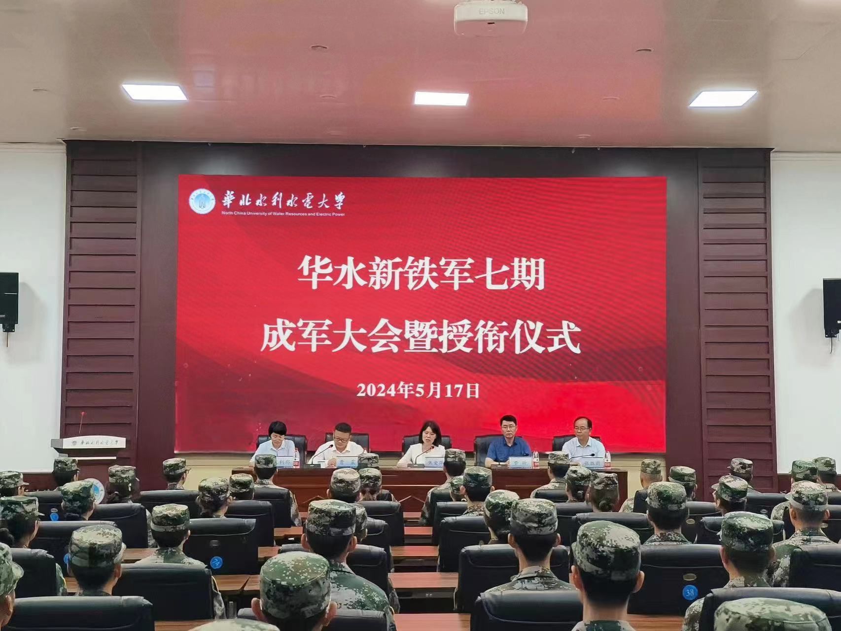 5月17日,华水新铁军七期成军大会暨授衔仪式在龙子湖校区学生事务中心第七会议室举行,校党委副书记焦爱萍出席仪式并讲话。仪式由党委学生工作部部长、华水新铁军政委曹震主持。