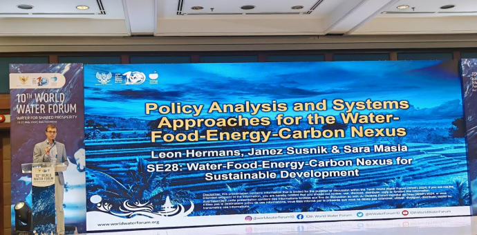 5月24日上午,我校在印尼巴厘岛成功举办了第十届世界水论坛“水-粮-能-碳纽带关系促进可持续发展”主题边会。刘俊国教授主持会议并做主旨报告,报告题目为“Managing Water-Food-Energy-Carbon Nexus for Sustainable Development(水-粮-能-碳纽带关系促进可持续发展)”。联合国教科文组织政府间水文计划(UNESCO-IHP)主席,UNESCO-IHP亚太地区指导委员会主席余钟波教授出席会议并致辞,荷兰IHE代尔夫特水教育学院土地与水管理部部长莱昂・赫曼斯教授、联合国环境规划署海洋及淡水部废水处理项目主管亚历克斯・皮雷教授、南方科技大学研究教授田展、西班牙PRIMA基金会项目主管阿里・鲁马教授、中国科学院过程工程研究所特聘核心研究员肖炘等参加会议并作报告。参加会议的还有来自瑞典、美国、印尼等国家的专家学者近百人。