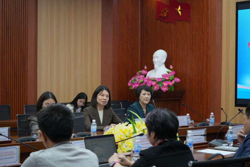 在越南水利大学访问期间,焦爱萍对越南水利大学的热情接待表示感谢,并介绍了我校办学特色、人才培养、学科专业建设以及在“双一流”创建国际化赛道上取得的成果。她表示,双方均为水利特色高校,专业设置相近,合作源远流长,期待本次代表团的访问能够进一步加深彼此了解,在水资源综合管理、洪旱灾害预防、清洁能源建设、河湖生态环保等领域推动校际合作,落实两校合作备忘录,深入开展人才联合培养、师资互派、校企联合开展国际科研项目申报、人文交流等工作。