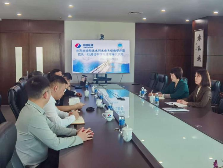 校党委副书记焦爱萍一行与中国电建越南代表处高级商务经理叶舟、中国电建贵阳研究院海外事业部总经理师雷声军等座谈