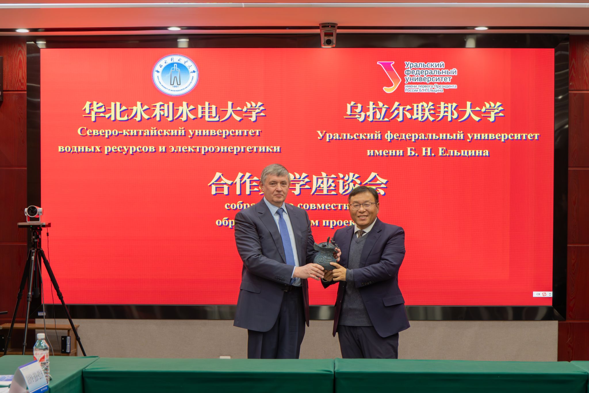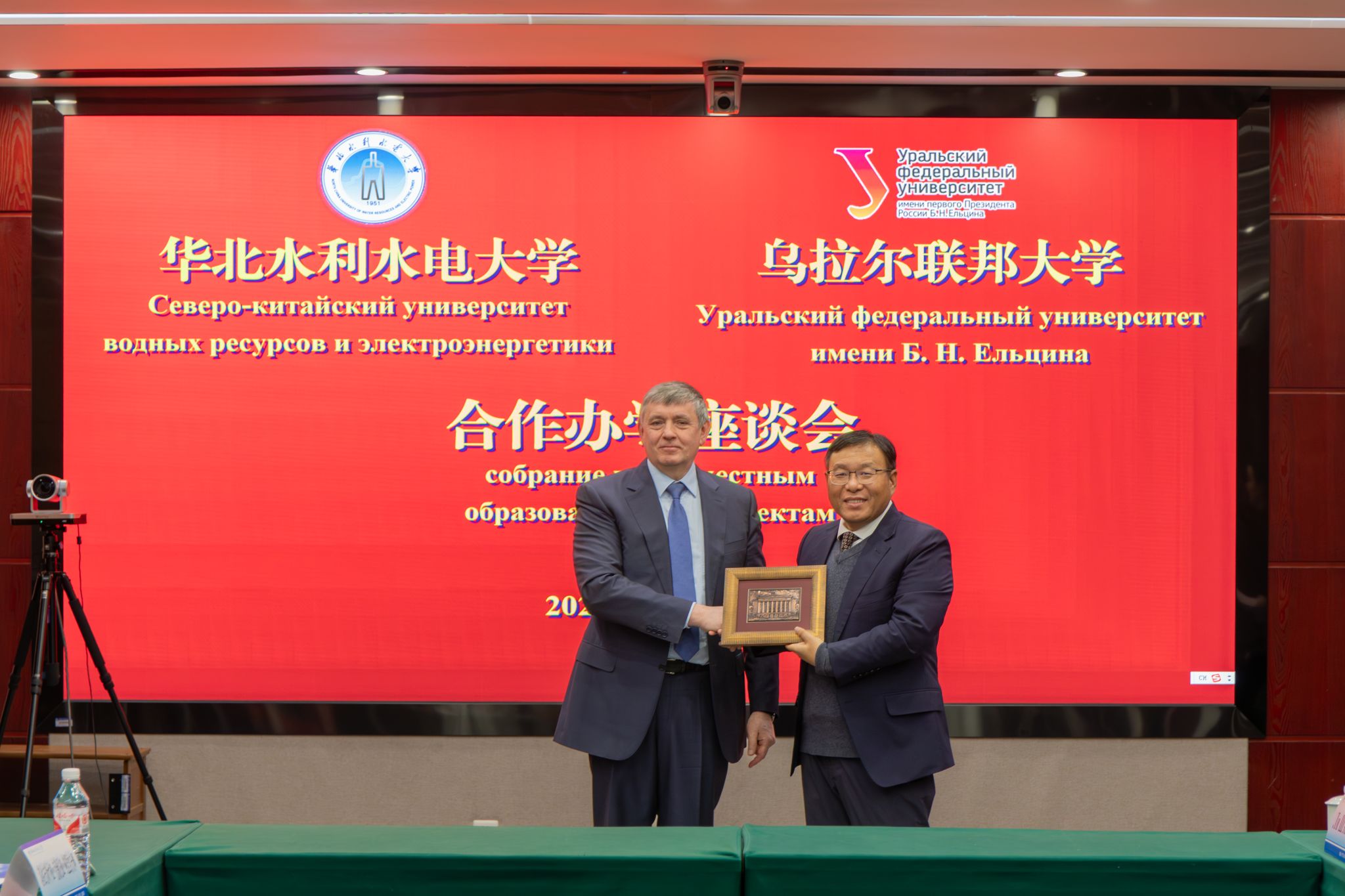 卡克沙罗夫介绍了乌拉尔联邦大学近期发展情况,尤其是在中俄合作办学方面的情况,两校合作办学机构顺利通过中华人民共和国教育部评估,在俄罗斯教育领域也受到广泛赞誉,取得了俄联邦教科部的嘉奖,这些成绩离不开两校管理与师资团队的紧密合作与辛勤付出。他表示,刘俊国校长提出的几点倡议是两校共同的愿望,未来乌拉尔联邦大学愿意与华北水利水电大学密切协作,推进硕博项目、联合本科培养项目的申报,促进高层次、高水平科研成果的产出。