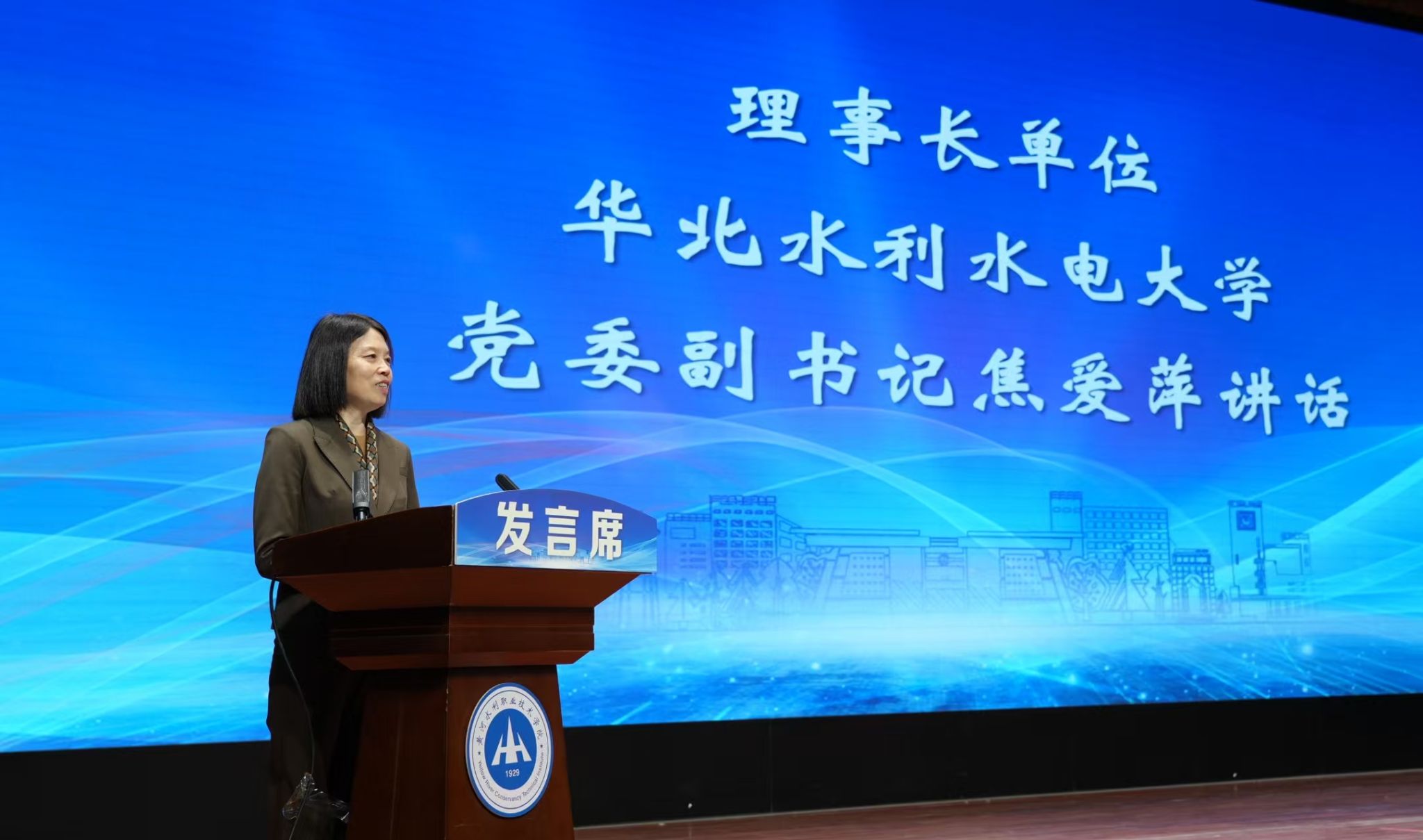 1月21日,由华北水利水电大学、坝道工程医院、黄河水利职业技术学院联合牵头的全国智慧水利和水灾害防治产教融合共同体成立大会暨坝道工程医院水利职教总部揭牌仪式以线上线下联动的形式在开封举行。中国工程院院士、坝道工程医院院长、黄河实验室(河南)主任王复明,我校党委副书记焦爱萍,开封市人民政府副市长刘震,黄河水利职业技术学院党委书记周保平,黄河水利职业技术学院校长胡昊等出席大会。全国各有关高校、企业共160余家单位、500余名嘉宾线上、线下参加大会。