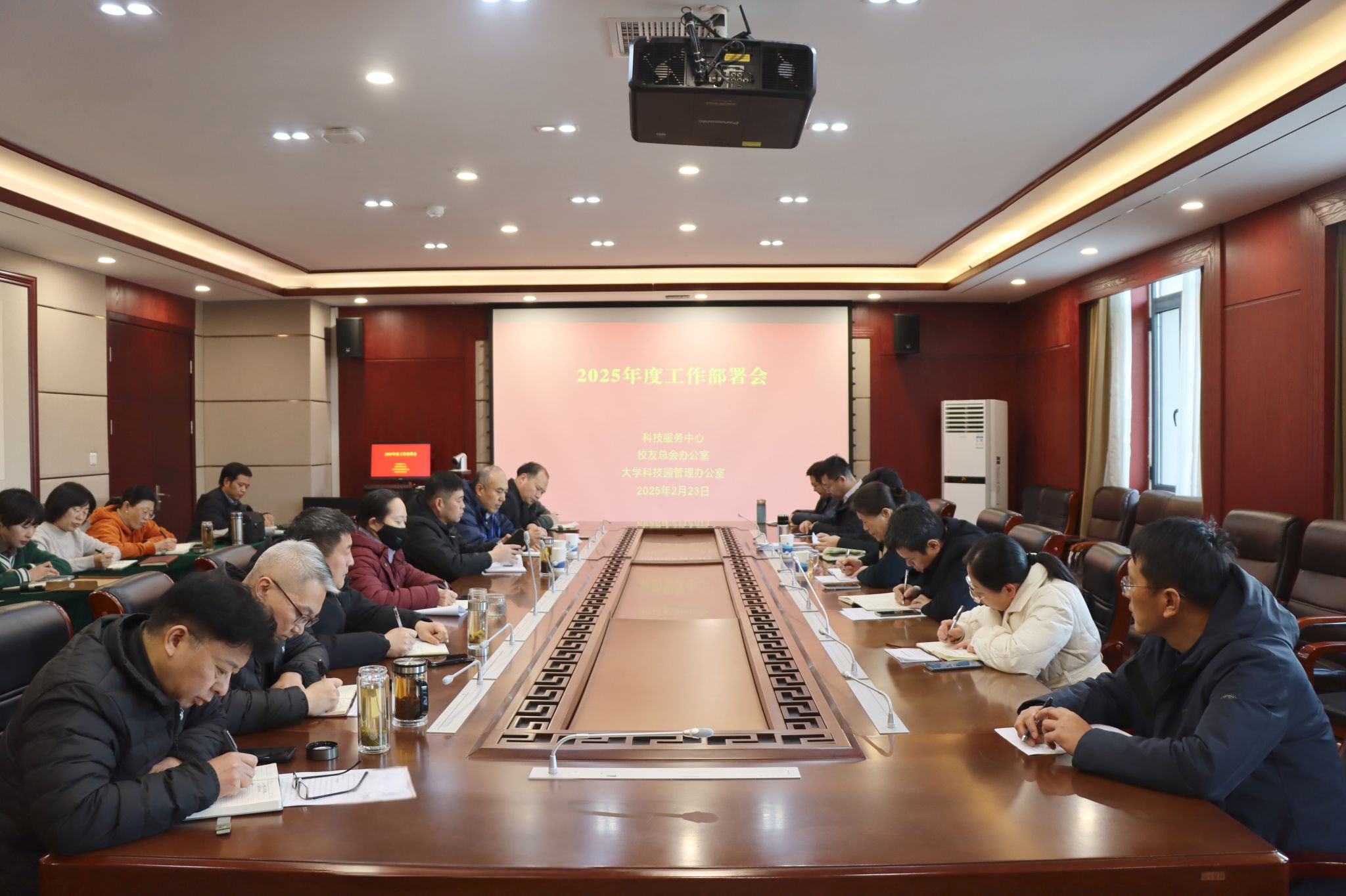 中心党总支书记毋红军传达了学校全面深化改革会议、2025年度工作部署会和安全稳定工作会议精神。中心执行主任刘海宁结合学校近期重要会议精神和科技服务中心重点任务,对社会服务机制改革和制度建设、区域研究中心筹建、科技服务重点项目推进以及校友会、基金会和校属企业运行管理等方面进行了工作部署。各区域主任、副主任以及各科室负责人立足岗位职责,围绕中心发展规划和业务开展汇报了个人2025年工作计划。大家一致表示,将在校党委、行政的坚强领导下,以更加坚定的决心和有力的举措,切实将科技服务工作做深、做细、做实,推动服务成效迈向新高度。