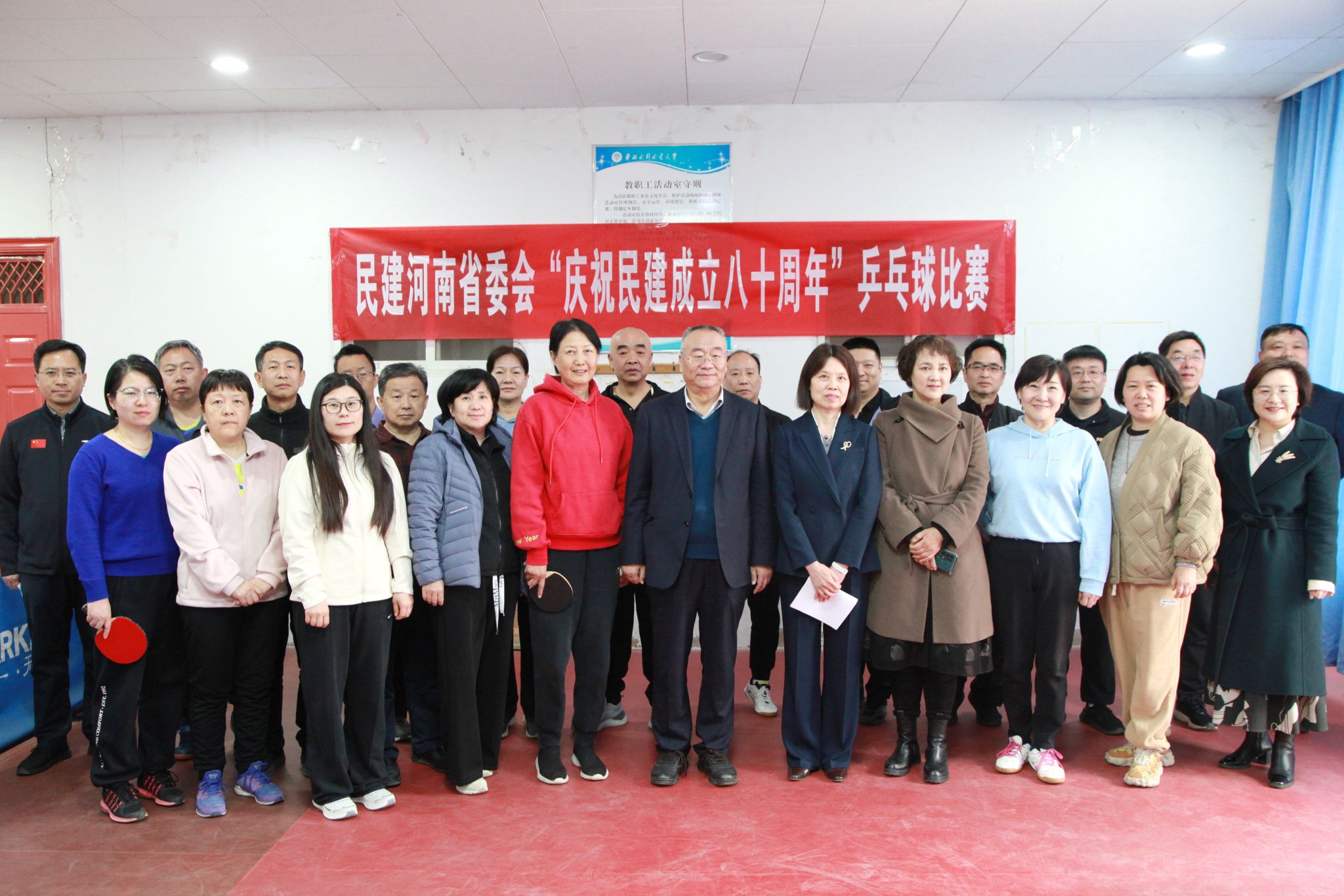 3月29日,民建河南省委会在我校举行“庆祝民建成立八十周年” 乒乓球比赛,全国人大代表、民建河南省委会主委梁留科出席开幕式并讲话,我校党委副书记焦爱萍应邀出席开幕式并致辞。校党委常委、统战部长毕雪燕参加活动,开幕式由民建省委会二级巡视员李峰主持。