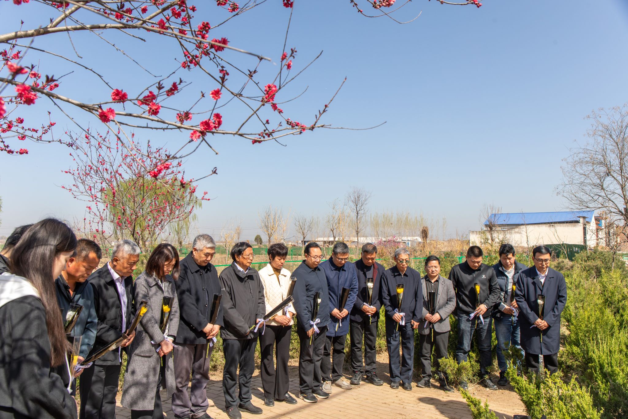 全体人员在孟瑞鹏烈士救人牺牲地——清丰县韩村镇西赵楼村莲花池,举行庄重的追思缅怀仪式。在肃穆的氛围中,大家列队肃立,向烈士默哀致敬、敬献鲜花,表达对英雄的无限哀思与崇高敬意。