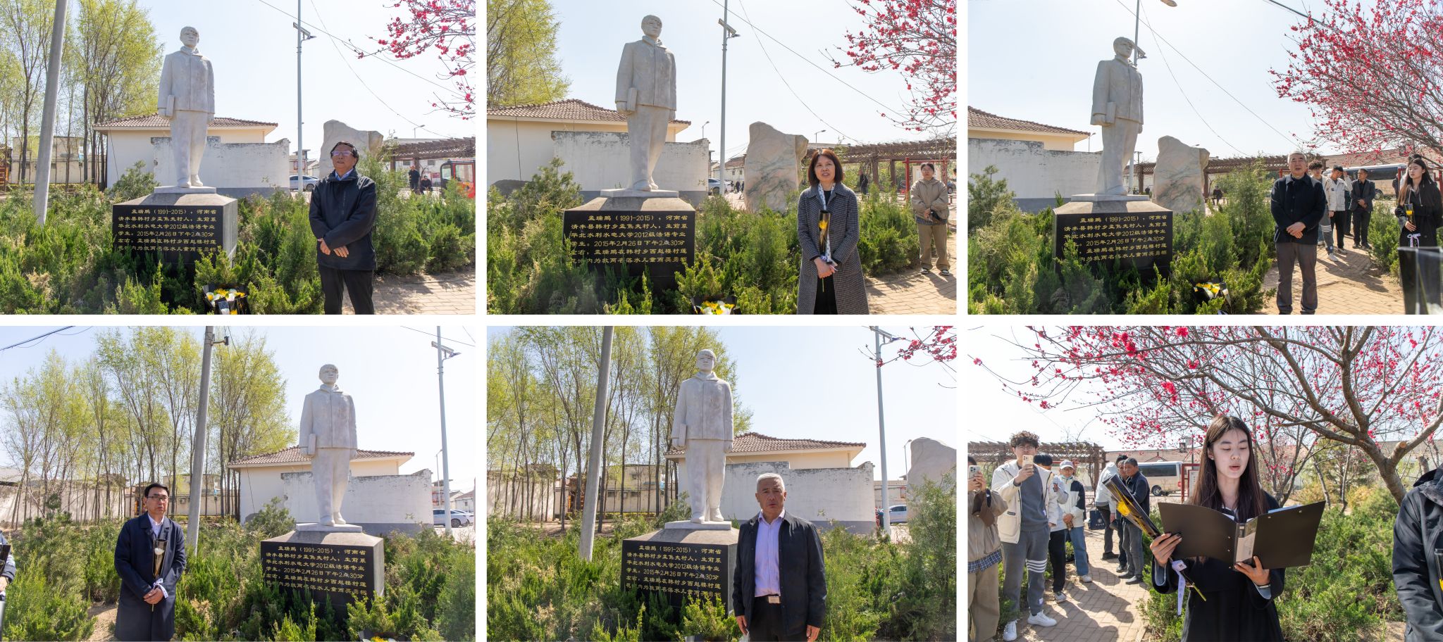 2025年4月1日,在清明节来临之际,为深切缅怀瑞鹏烈士,传承弘扬瑞鹏精神,汲取奋进力量,铸就强大的思政引领力,学校联合河南省教育厅关心下一代工作委员会,赴清丰县开展纪念孟瑞鹏烈士牺牲十周年清明节缅怀活动。河南省教育厅关工委副主任高治军,校党委副书记焦爱萍,时任校党委书记朱海风,校关工委主任、时任校党委副书记石品出席活动。