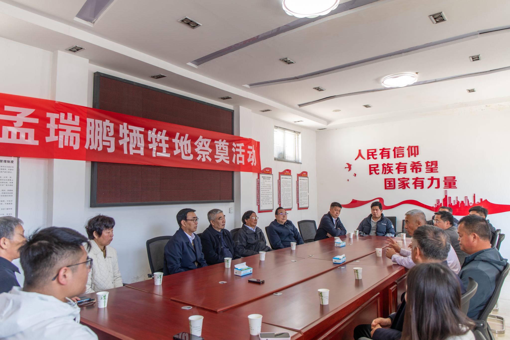 追思缅怀仪式结束后,与会人员在西赵楼村村委会党员活动室,围绕孟瑞鹏事迹的深入挖掘、瑞鹏精神的研究阐释、瑞鹏精神的弘扬传承等主题进行了深入座谈交流。