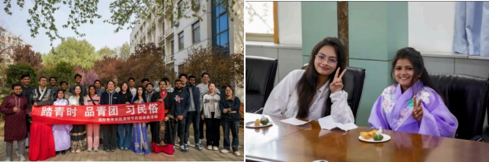 为进一步加强校园文化品牌建设,弘扬中华民族传统文化,促进中外学子文化交流,让留学生在传统民俗的体验活动中感受中国历史的博大精深。 国际教育学院(乌拉尔学院)于4月3日在龙子湖校区和花园校区同步开展了“踏青时 品青团 习民俗”清明节民俗体验活动。活动以知识科普、民俗实践、诗词创作和汉服体验为载体,吸引百余名中外学子参与,在沉浸式互动中感受清明文化的深厚底蕴。