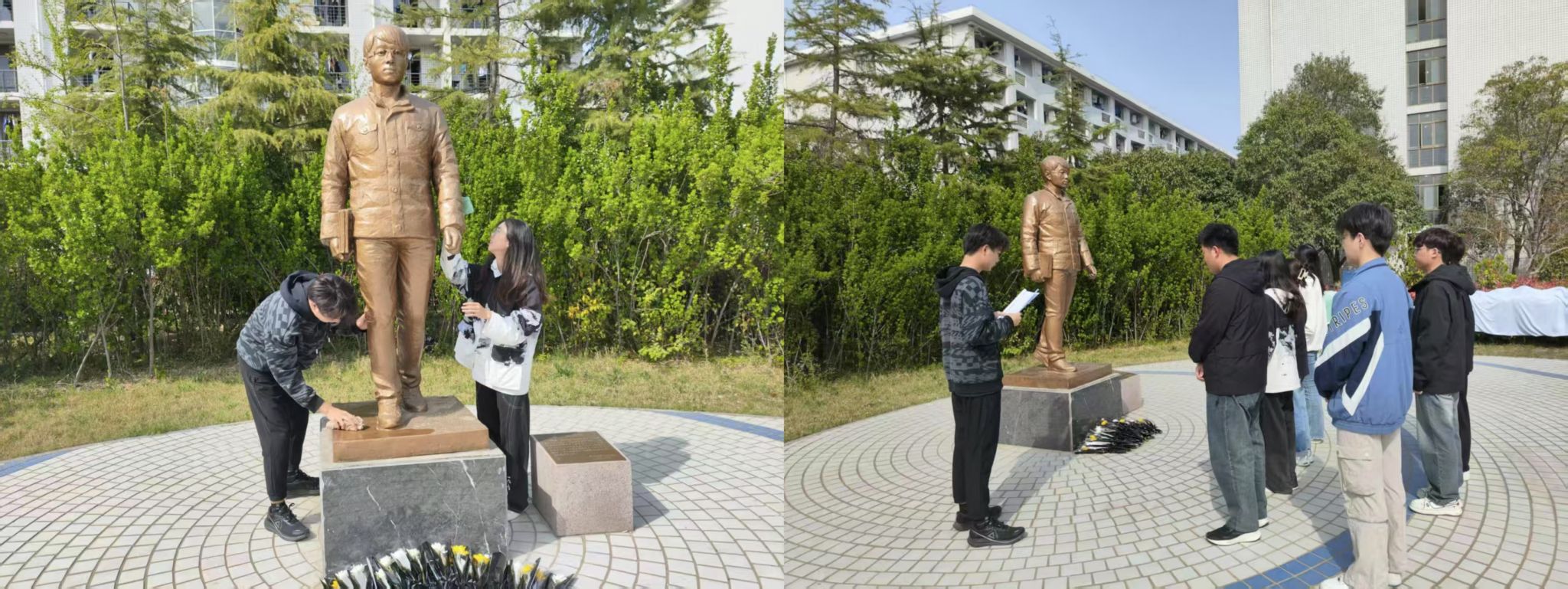 4月3日,信息工程学院在清明节来临之际组织学生党员代表开展了“祭奠孟瑞鹏烈士,传承英雄精神”清明节祭扫活动。党员代表们怀着崇敬之情,整齐列队来到孟瑞鹏烈士雕像前,肃穆凝视,表达对烈士的敬仰与怀念。党员们深受震撼,纷纷表示要以孟瑞鹏烈士为榜样,将烈士的精神铭记于心,努力践行到实际行动中,为新时代的伟大事业贡献自己的智慧和力量。