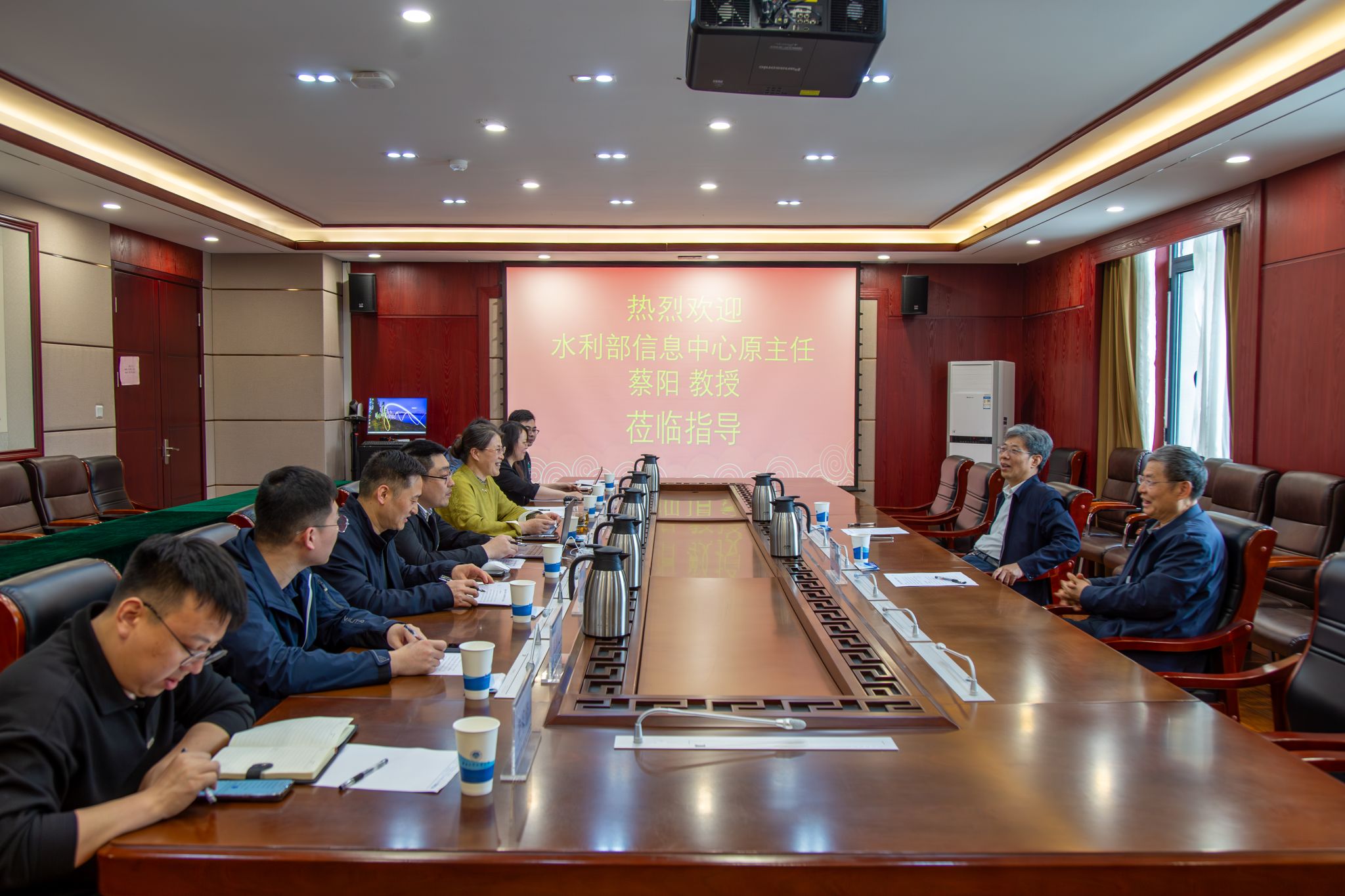 4月8日-9日,蔡阳一行还先后与数字孪生水利高等研究院举行座谈交流会,参加水利部《水利人工智能应用技术与实践》教材研讨会,并参观了我校办学成果展。