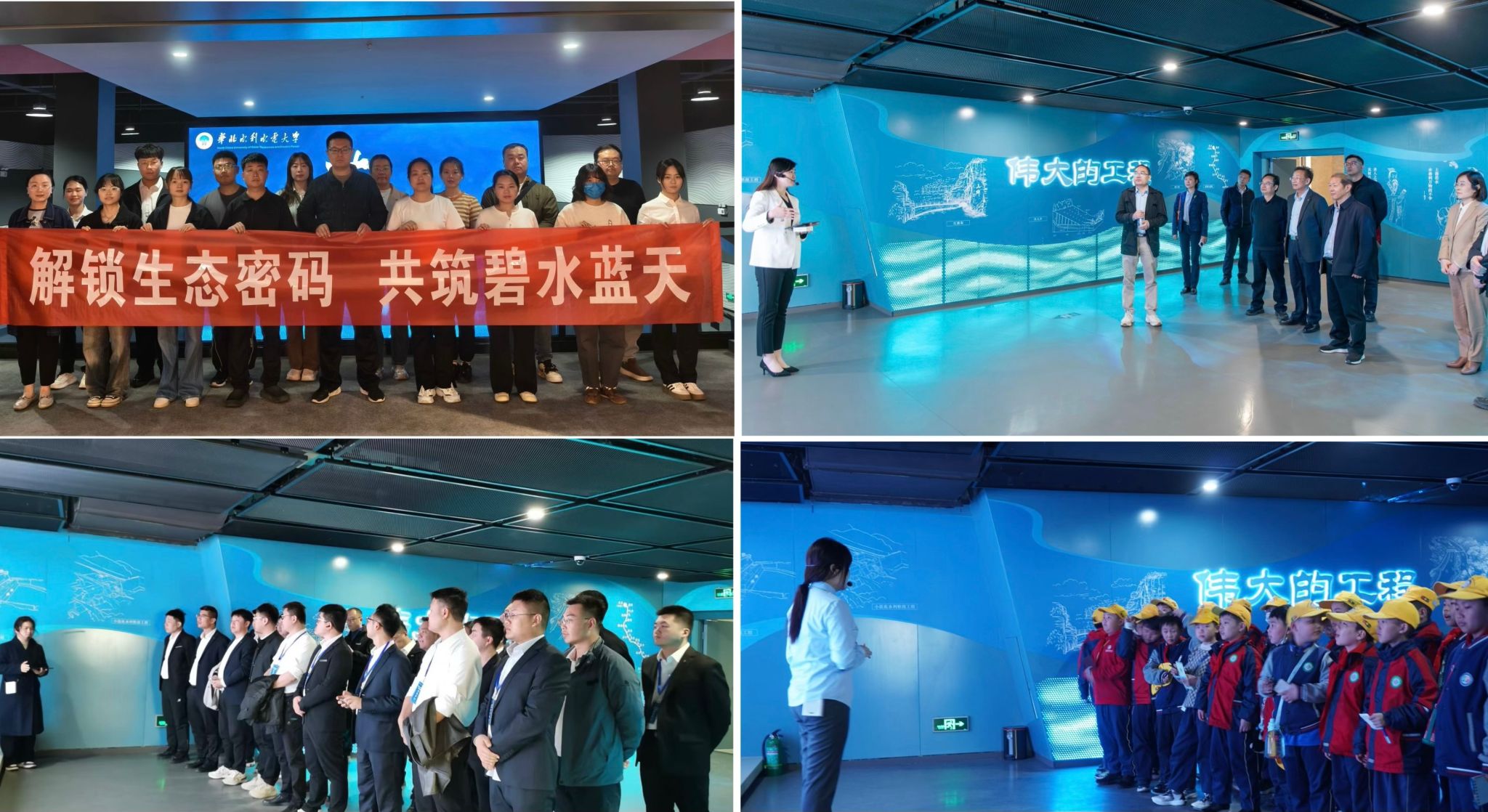 活动期间,我校水文化馆迎来参观热潮,来自政府、高校、水利单位和企业等多个领域的代表纷至沓来。其中,郑州市青年千人创新团队、中国水利博物馆、山西陵川县水务局、邢台青山水库、郑州信息工程职业学院、吉林省城市供水公司、中国铁路三局、河南省教育厅等单位,以及中国保护黄河基金会、黄河博物馆等机构陆续到馆调研交流。华水小学学生、春华学校师生和参加教学创新大赛的校外专家也走进馆内参与研学。水文化馆以系统全面的展陈内容、厚重的文化底蕴、科技与艺术的结合和灵活多样的教育功能,使参观者在沉浸式体验中深刻体悟到水文化的当代表达与实践价值,持续发挥育人、育智、育德的重要作用,正日益成为学校传播中华水文化、讲好新时代水利故事的重要平台和开放窗口。