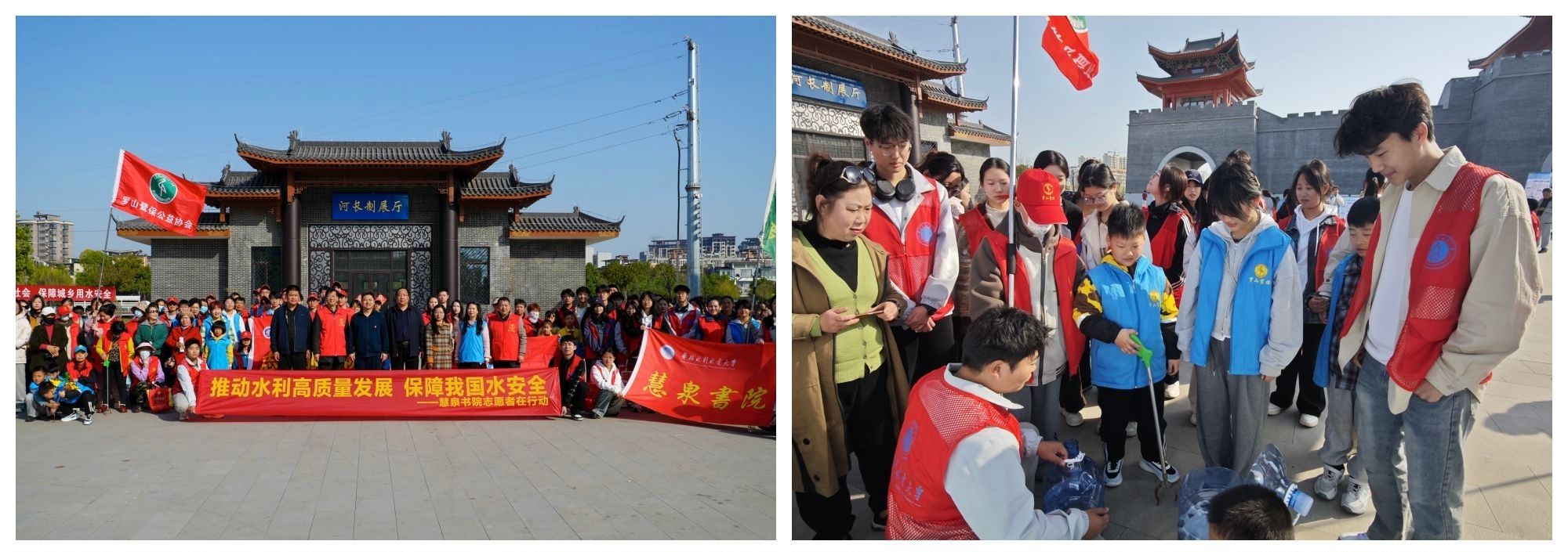 3月22日,慧泉书院联合罗山县水利局、县河长办等多家单位,组织200余名志愿者在罗山县小潢河畔与挹秀门广场开展“巡河生态环境保护”志愿活动。活动聚焦习近平生态文明思想和“节水优先、系统治理”治水方针,旨在传播水文化、增强公众环保意识,助力水资源保护。志愿者们通过污水净化演示、河道清洁、发放护河倡议书等方式,推动“河长-社区-学校”联动共治。未来,书院将依托“慧青年”志愿服务工作坊,持续深化水日水周教育实践,构建常态化志愿服务体系,凝聚青春力量,共护幸福河湖。