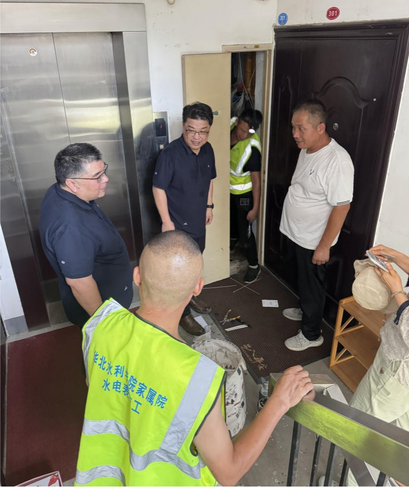 随后,姜彤来到校园网投资运营项目施工区域,重点检查了光缆铺设、弱电间改造等作业面。针对持续高温天气,他特别强调:一要严守消防安全底线,配足消防器材,加强墙面打孔等动火作业巡查;二要合理安排施工时间,避免高温时段长时间作业;三要加强与学校各部门的沟通对接,妥善处理施工过程中可能出现的各种问题,保障施工顺利进行。