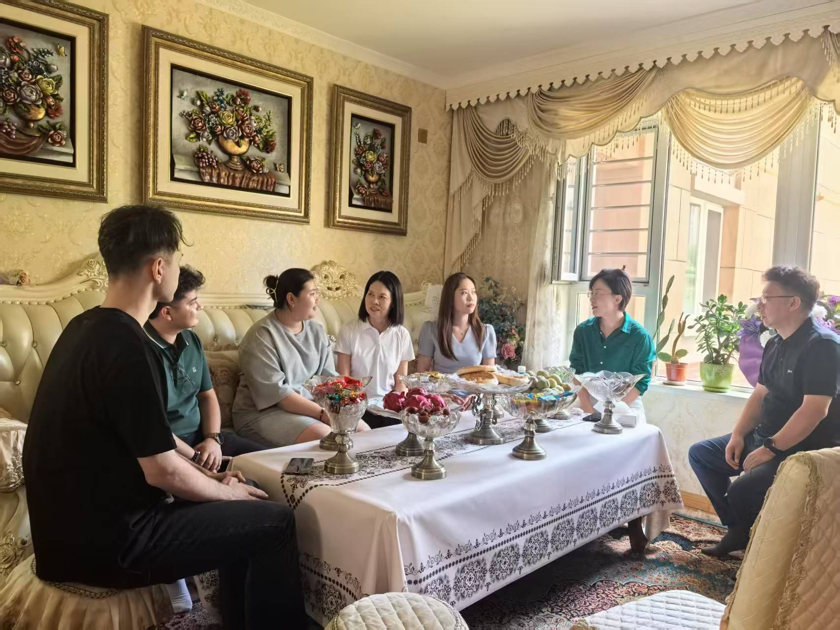 焦爱萍一行还专门看望了我校3名少数民族辅导员,到管理与经济学院2023级学生娜孜娜·热合曼家中进行家访慰问,详细了解他们的家庭生活情况。交谈中,焦爱萍勉励老师们要发挥优势,根据学生成长发展需要开展指导,为促进学生成长成才、增进民族团结、建设好华水民族大家庭做出贡献;勉励学生要传承发扬华水优秀传统,珍惜学习时光,脚踏实地、克难奋进,用过硬本领服务祖国西部建设,建设好大美新疆。