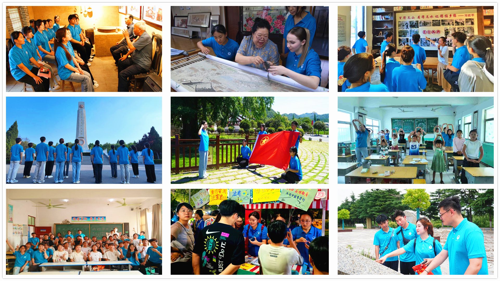 外国语学院“水韵丝路”实践队跟随汴绣传承人何丽霞穿针引线,将《清明上河图》绣品与“一带一路”主题结合,拍摄双语非遗宣传片,用青春视角架起文化交流的“针尖桥梁”;清源书院“青禾向阳行”支教团在杞县祁楼小学开设“黄河水密码”课程,带领孩童共绘“心中的母亲河”,播撒文化传承的种子;人文与艺术学院“皮影新声”实践队在同盟古镇改编传统剧目,融入电子音效和现代台词,让千年皮影戏吸引年轻观众,为黄河文化传承注入青春力量;慧泉书院“石榴同心,E 脉相连”实践队深入登封市马家寨村开展民族团结主题实践活动,通过听故事、看发展、办实事、品文化等多维度实践,全方位感受登封市各民族交往交流交融的生动场景,促进各民族之间的团结与和谐;人居科学与设计学院“锈迹生辉·复兴者”实践队在郑州记忆·油化厂创意园开展公益讲解活动,向公众讲述油化厂不同时期的发展故事,诠释工业遗产文化振兴之路,强化公众对工业遗产保护的认知。
