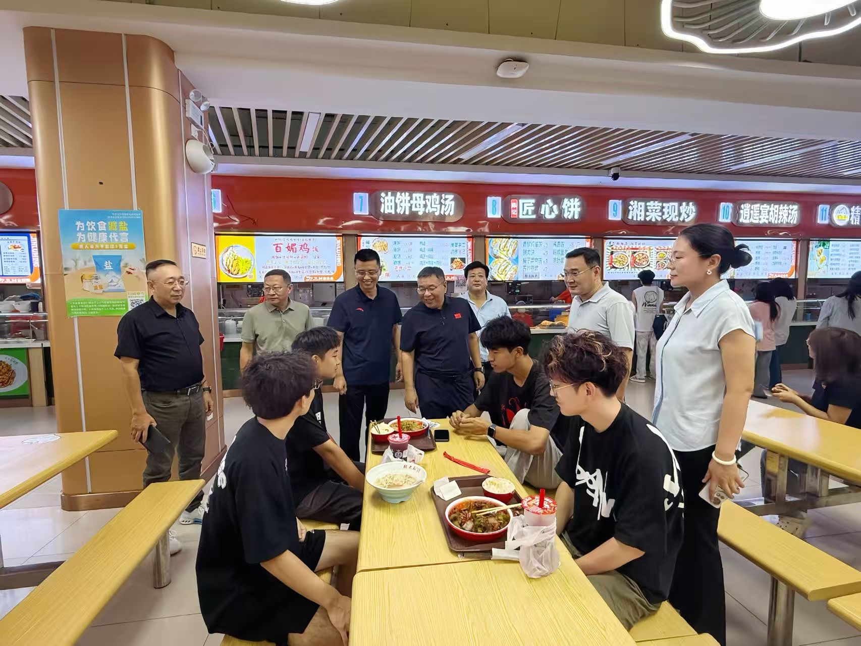 8月26日上午,校长刘俊国、副校长张志增一行深入学生食堂,调研指导食品安全工作和开学供餐保障工作。