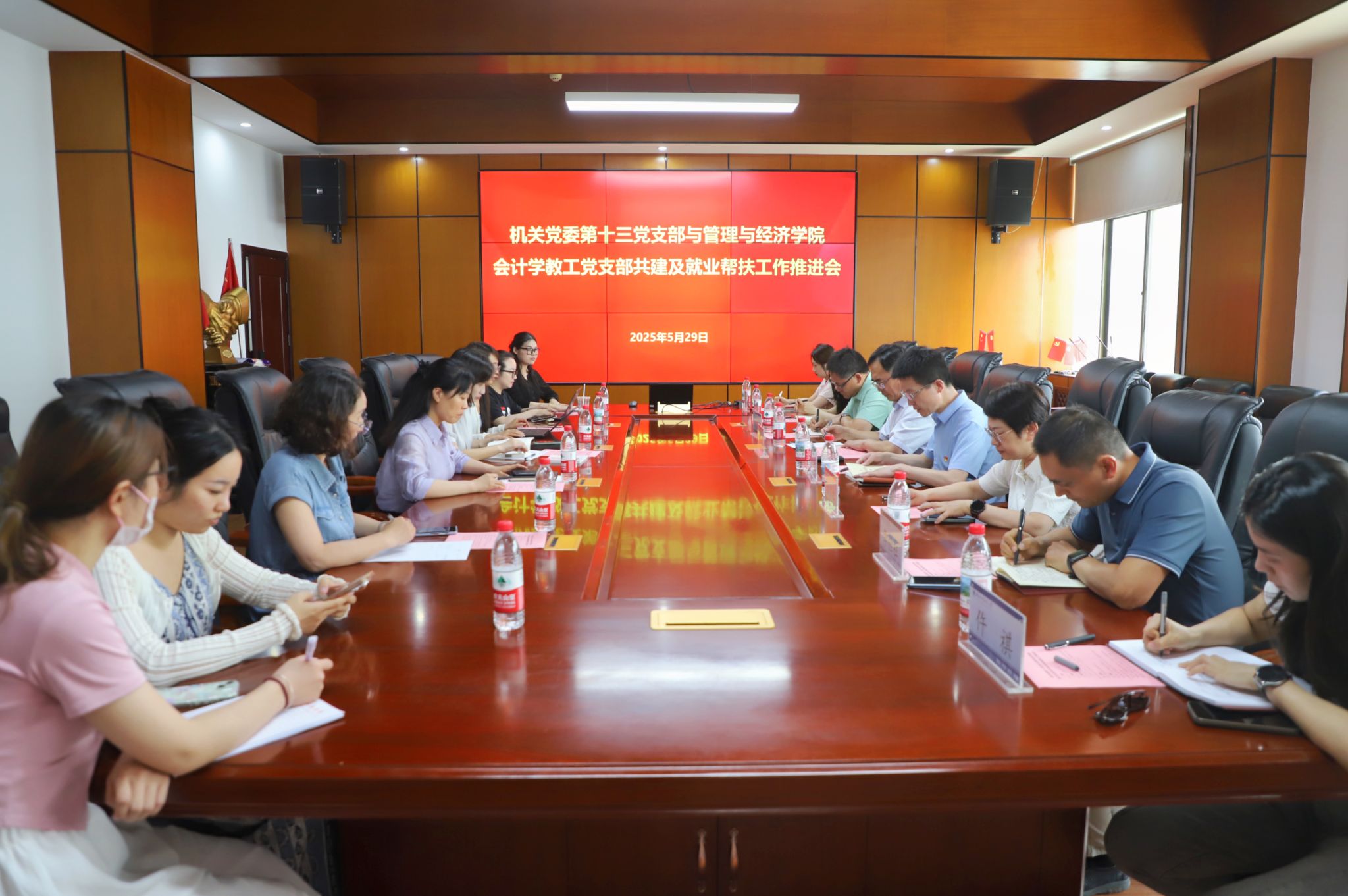 5月29日,机关党委第十三党支部与管理与经济学院会计学教工党支部联合召开支部共建暨就业帮扶工作推进会。机关党委第十三党支部书记、国资处处长李权才、副处长韩江峰、秦雷雷及支部党员参会。管理与经济学院党委书记程霞主持会议。在管理与经济学院大厅,全体人员认真聆听《贯彻落实中央八项规定精...