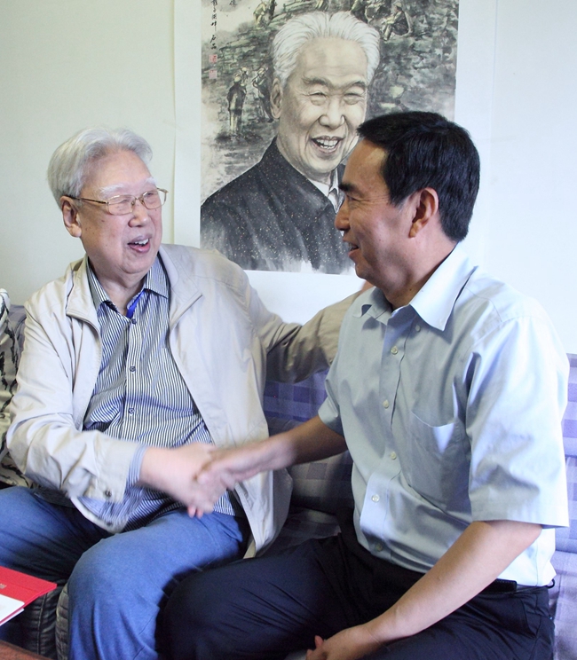 7月26日,华北水利水电大学党委副书记石品一行冒雨来到红旗渠总设计师、时任林县县委书记杨贵北京的家中拜望,向他表示崇高的敬意和诚挚的祝福,代表学校向老书记赠送石品教授创作的国画作品《杨贵书记》。...