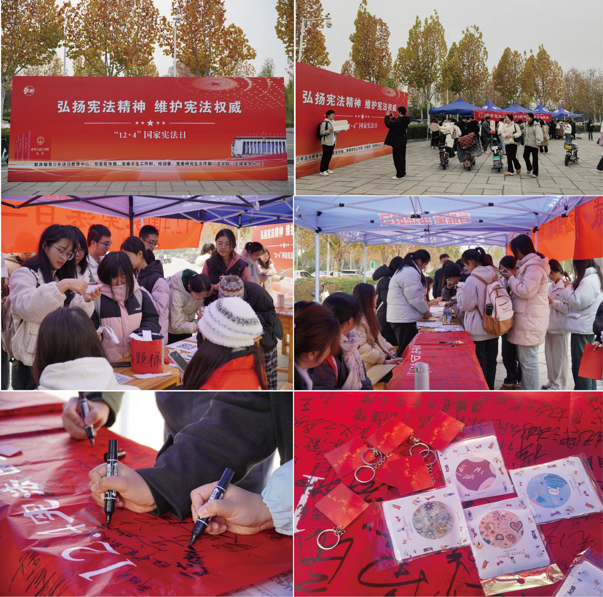 12月4日,是我国第十一个国家宪法日。为增强大学生的法治观念,弘扬宪法精神,教育部青少年法治教育中心、华北水利水电大学法学院(法律事务中心)、河南省魏华辅导员工作室在龙子湖校区红旗广场隆重举办了“知宪明法,与宪同行”宪法知识答题、“学法打卡,‘宪’在开始”点赞打卡、“宪法在我心”...