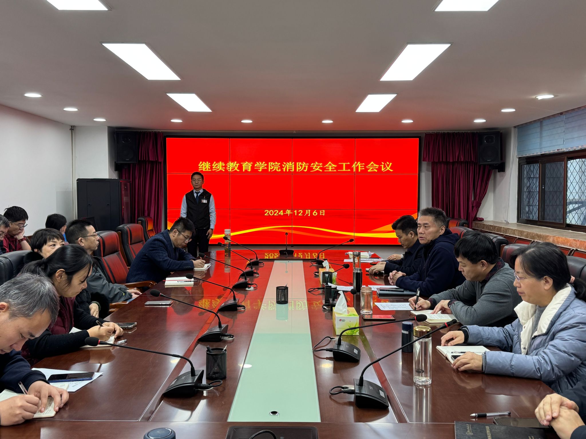为进一步增强学院教职工消防安全意识,提升教职工消防安全工作业务能力,根据学校2024年消防安全工作安排,继续教育学院于2024年12月6日在学院会议室召开学院消防安全工作会议,学院全体教职工参加了会议,会议由继续教育学院党总支书记魏东军主持。会议传达了学校消防安全工作会议精神,认真学习了...