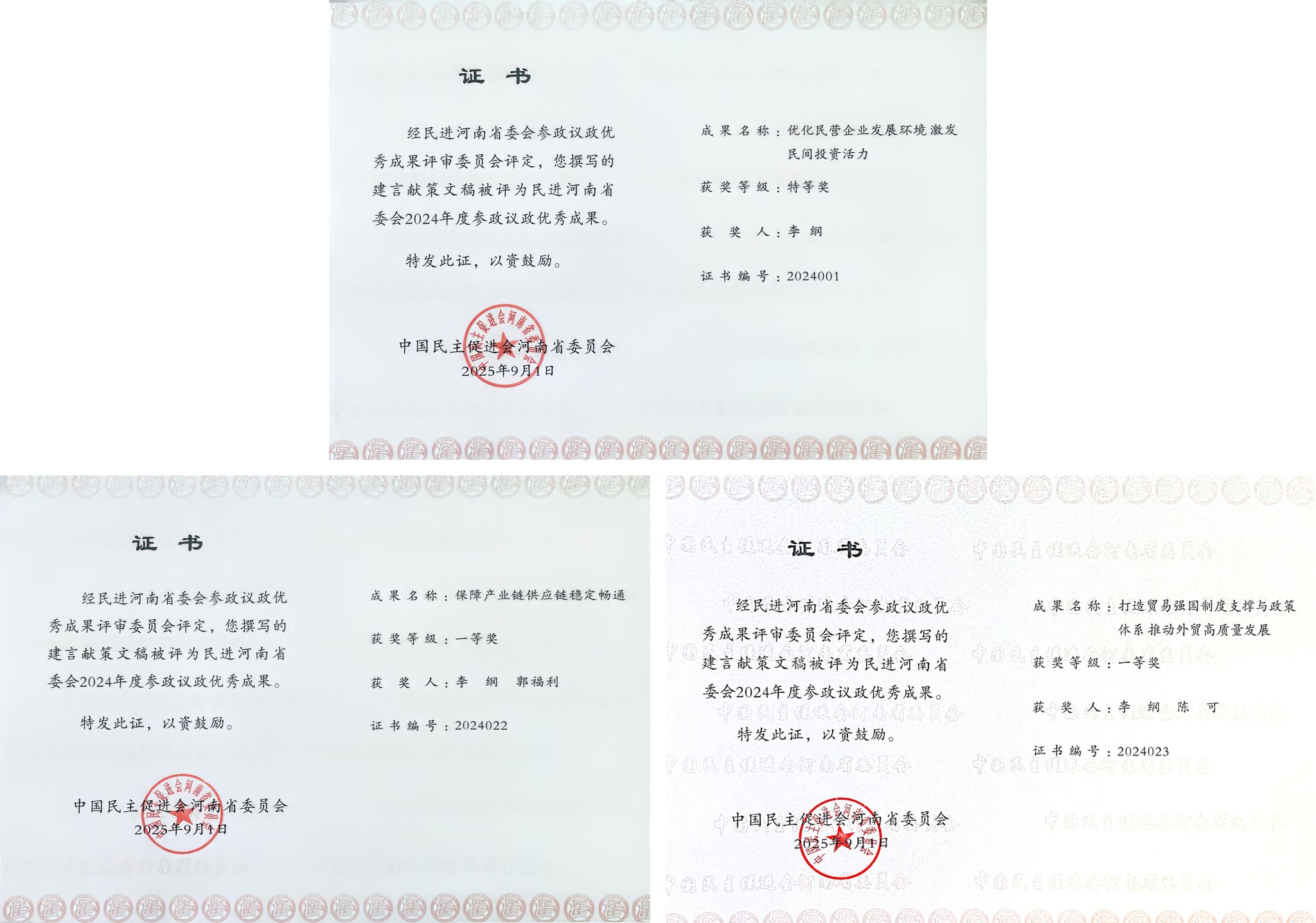 近日,民进河南省委会2025年参政议政工作会议在郑州召开。会议公布了2024年度参政议政优秀成果评定结果,我校多名教师撰写的多篇建言献策文稿获得表彰。经民进河南省委会参政议政优秀成果评审委员会评定,李纲教授、郭福利副教授、陈可博士等多项成果荣获特等奖、一等奖、二等奖。李纲教授的《优化...