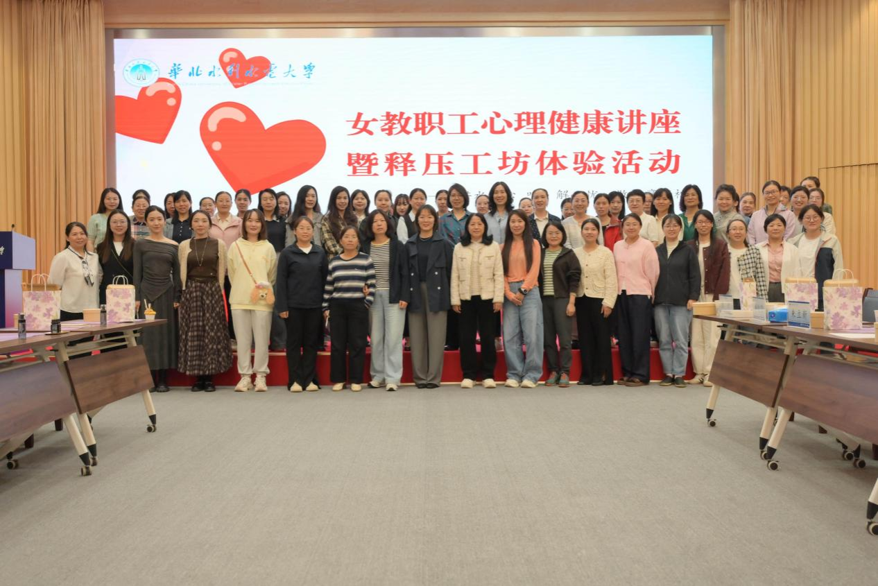 为进一步关注我校女教职工心理健康,帮助大家缓解工作与生活中的压力,提升自我调适的能力,近日,校工会女工部在龙子湖校区第四报告厅举办以“若水润心-听·解心忧,做·享轻松”为主题的女教职工心理健康讲座暨释压工坊体验活动。近百名女教职工齐聚活动现场,在专业引导与动手创作中放松身心、汲...