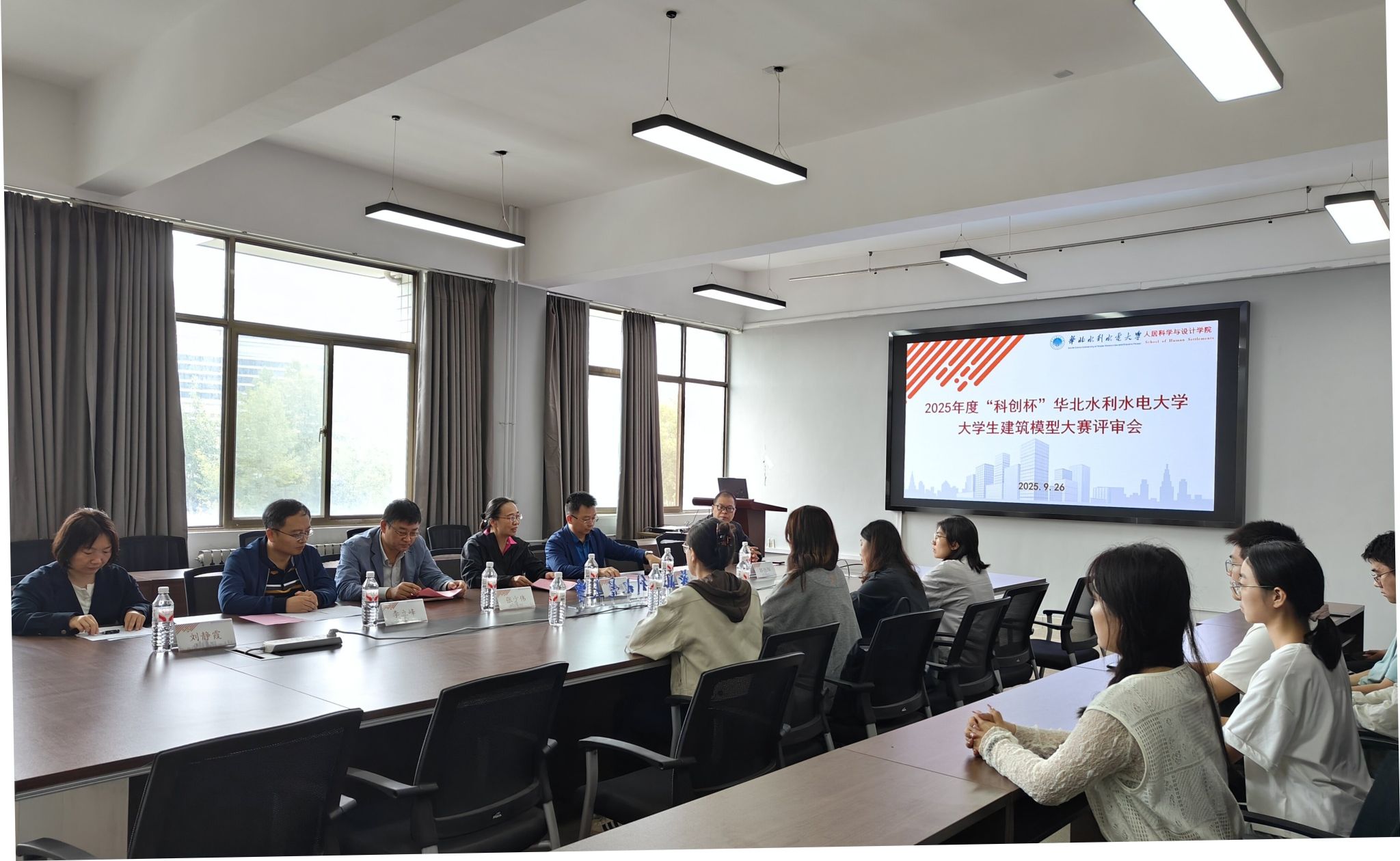 2025年9月26日上午,2025年度“科创杯”大学生建筑模型大赛在人居科学与设计学院室内展厅举行。特邀工程实践与创新中心(大学科技园管理办公室)主任李秀丽、副主任李立峰,国际教育学院(乌拉尔学院)院长李胜机,人居科学与设计学院院长张少伟,校团委副书记郭旭阳及专业老师担任评委。在评审会上...