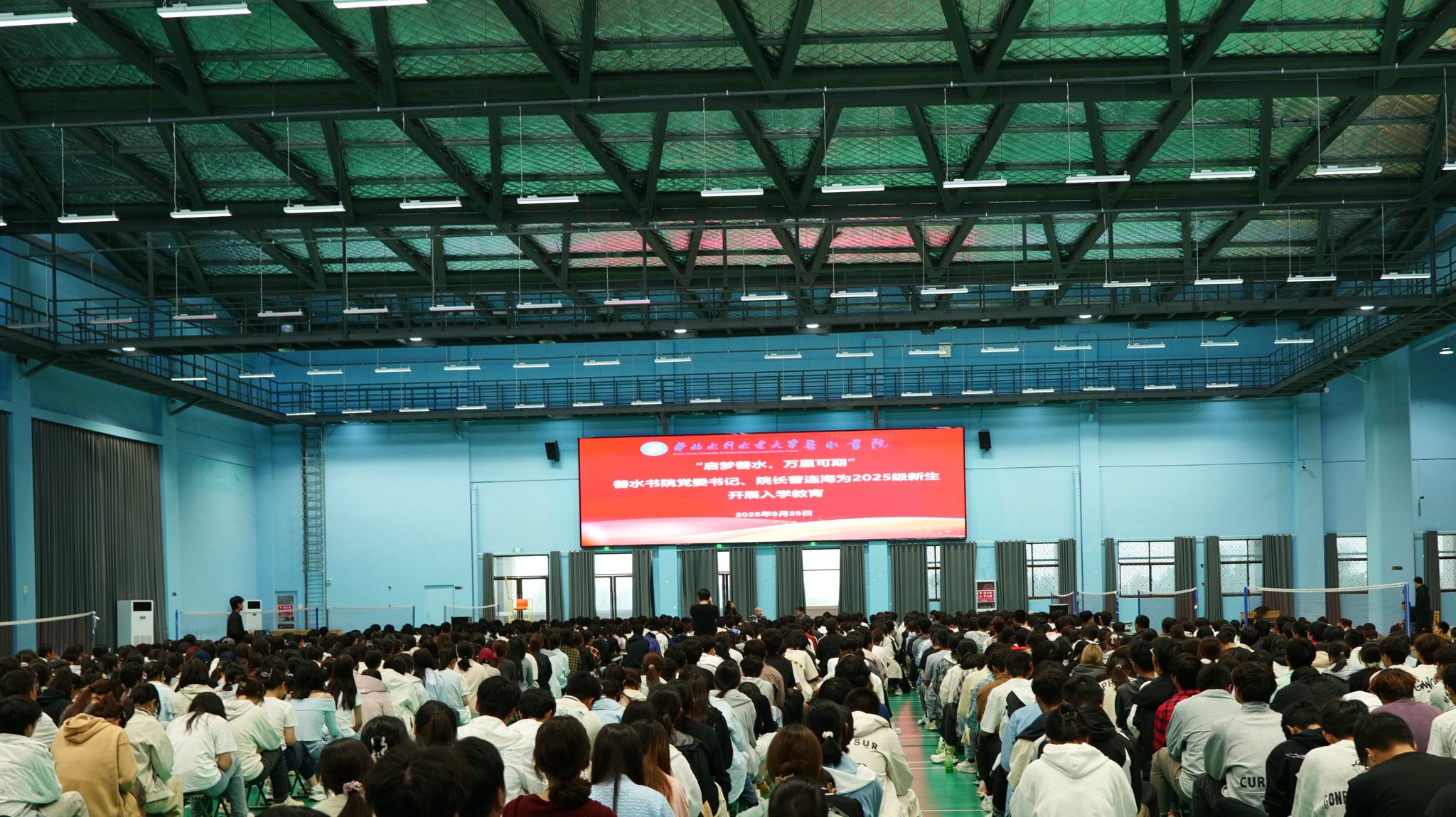 扬帆起航风正劲,砥砺奋进在今朝。9月28日上午,善水书院在江淮校区体训馆开展新生入学教育暨院长第一课,书院党委书记、院长曹连海以“启梦善水,万里可期”为主题,为同学们带来了精彩的报告。书院副院长杨洋、全体老师及1100余名新生参加了此次活动。现场气氛热烈,师生齐聚,共同聆听院长第一课...