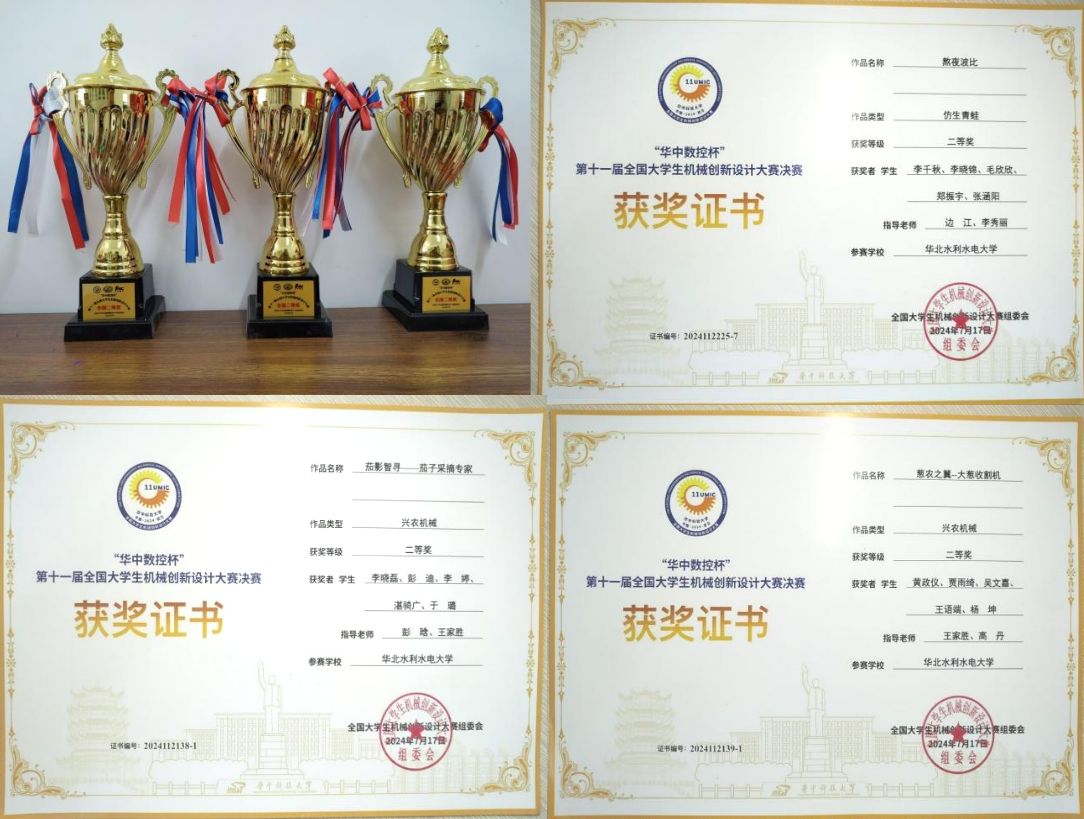 经过激烈角逐,边江、李秀丽老师指导,李千秋、李晓锦、毛欣欣、郑振宇、张涵阳5位参赛同学设计的“熬夜波比”作品获得仿生机械-仿生青蛙赛项国赛二等奖;彭晗、王家胜老师指导,李晓磊、彭迪、李婷、湛骑广、于璐5位参赛同学设计的“茄影智寻——茄子采摘专家 ”和王家胜、高丹老师指导,黄政仪、贾雨绮、吴文嘉、王语端、杨坤5位参赛同学设计的“葱农之翼——大葱收割机”2件作品均获得兴农赛项国赛二等奖。